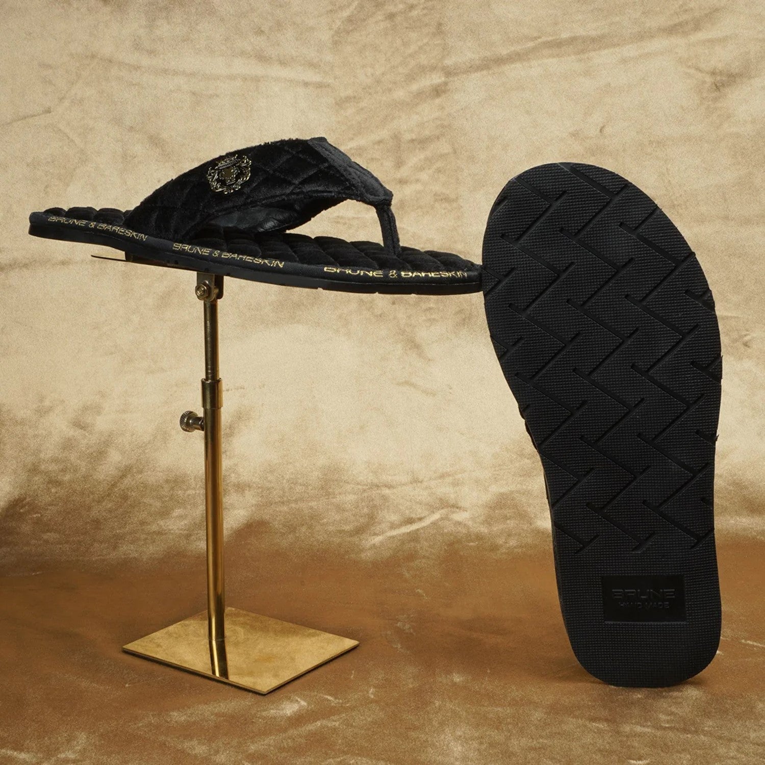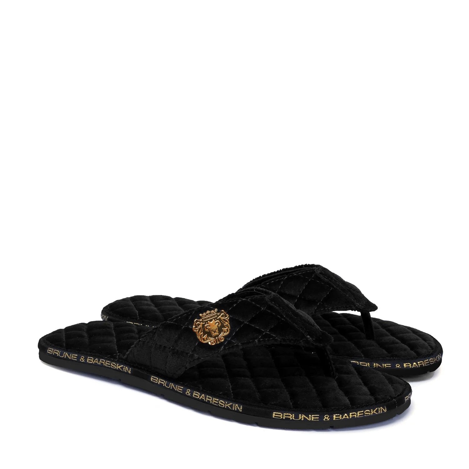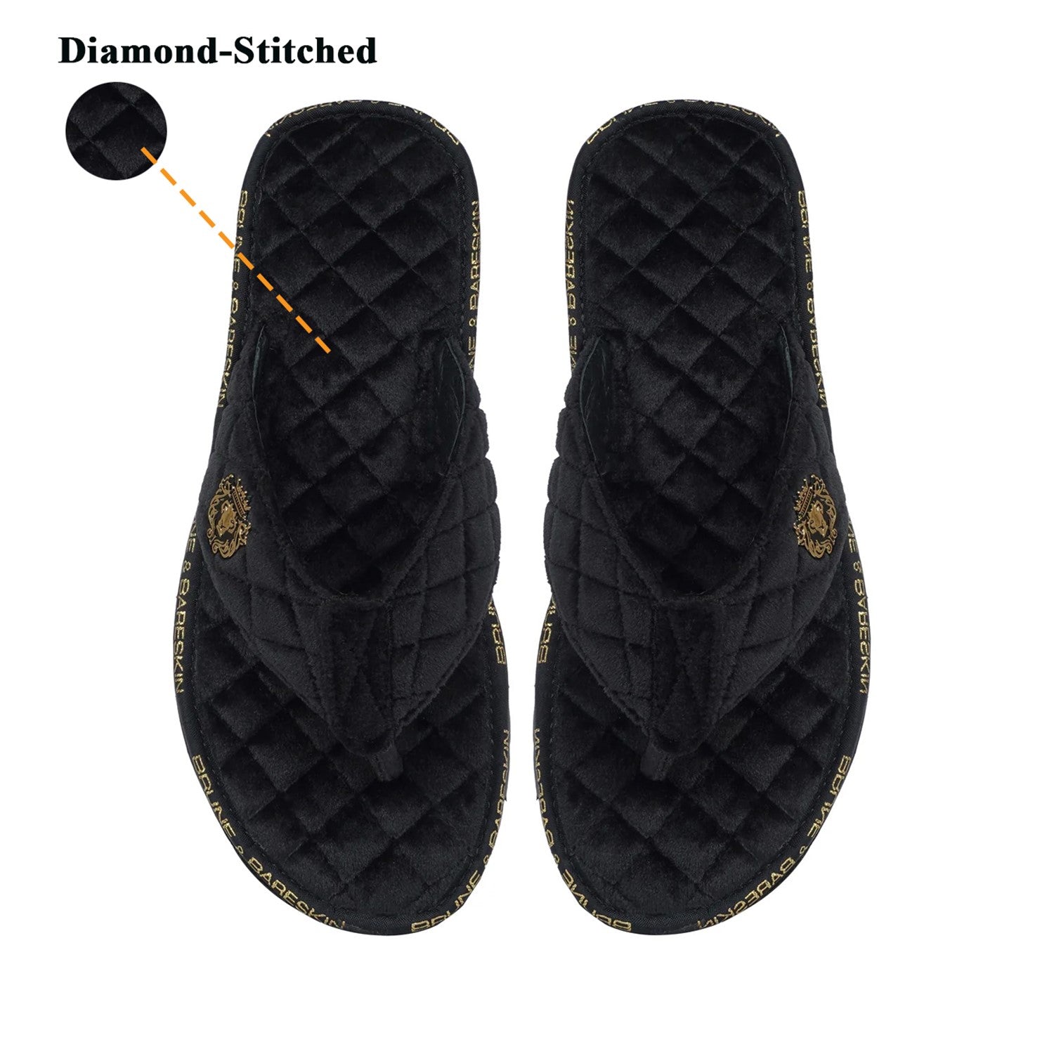 V-Shaped Quilted Slippers with Black Brand Lining Velvet