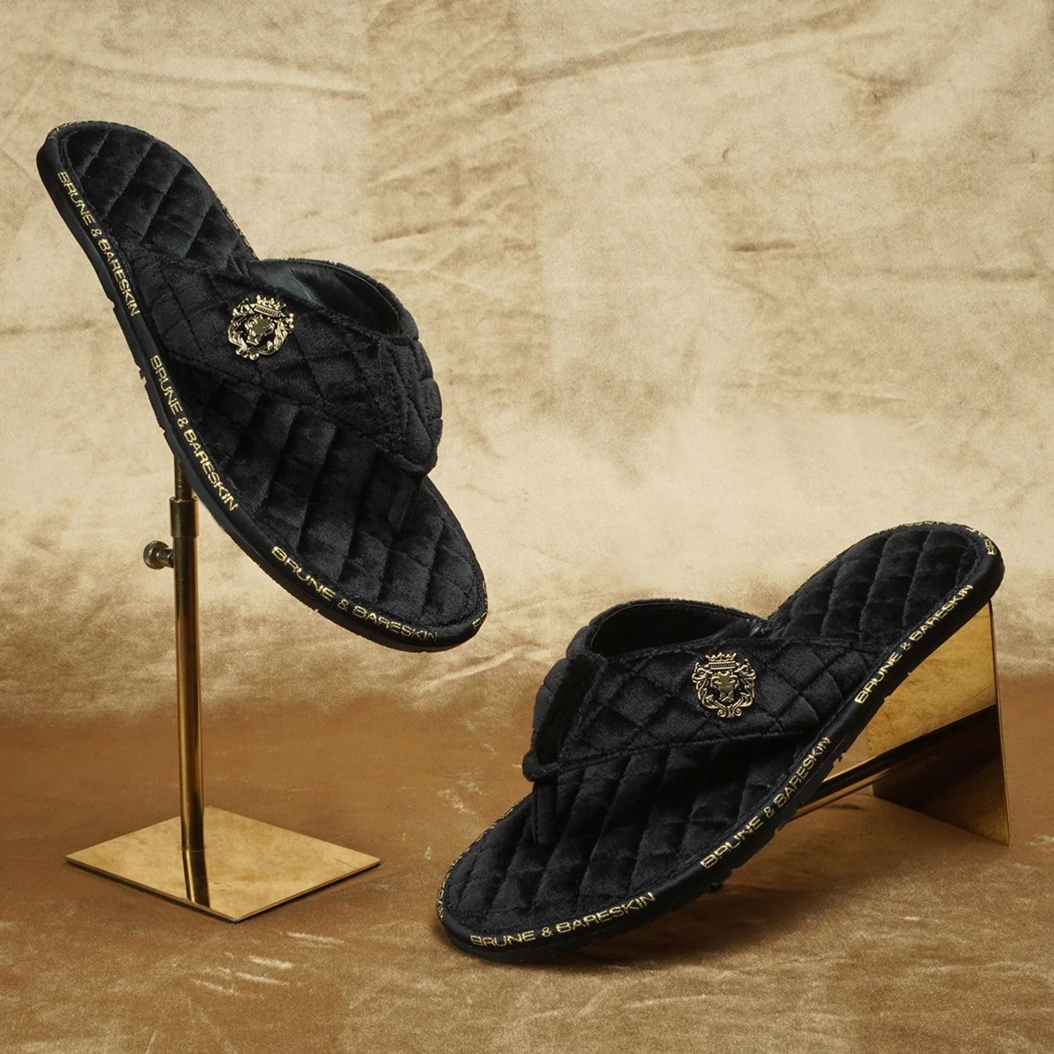 One of the most comfortable and super soft slippers present in the style bucket of Brune & Bareskin. The Lion Logo on the strap looks very elegant & classy. The whole diamond-stitched velvet base is designed to provide you extra cushiony effect while walking. The branded Brune & Bareskin lining at the edge of the footwear gives it a more elite look. It has memory foam in the base which helps to retain its quilted design. This dual shade effect velvet slipper looks fab when you carry it with Jeans, Shorts, Capris, and other casual wear. Anti-Skid Rubber outer sole ensures the perfect walking grip.