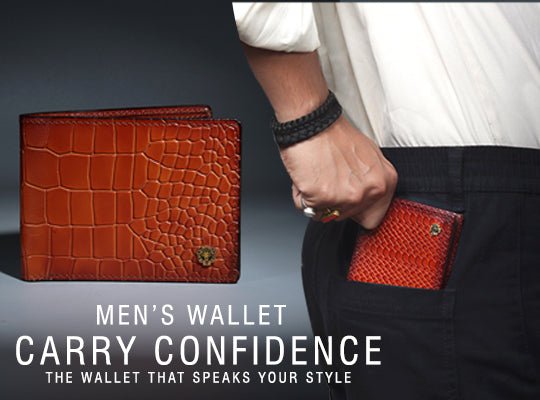This bi-fold Cognac Croco print leather wallet with hand painted Smokey finish looks very elegant....