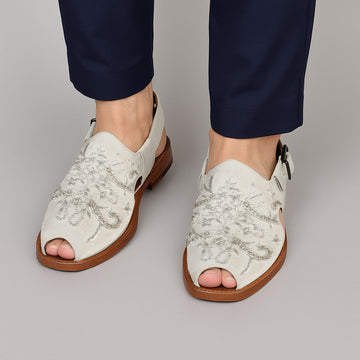 These white pair full zardosi sandals are hand made with the selected finest materials. This sandal...