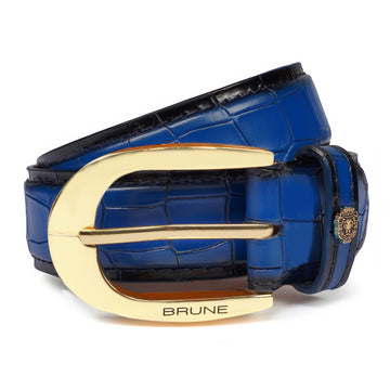 Expertly crafted by Brune & Bareskin, this tan patina finish croco embossed belt is designed...