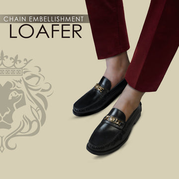 Experience the perfect blend of elegance and comfort with our Chain Embellishment Trademark Lion Logo Black...