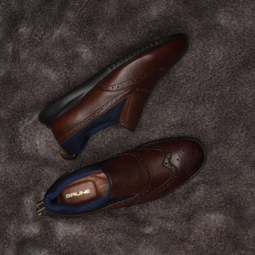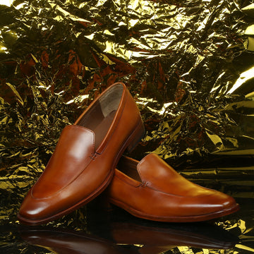 Tan leather formal loafer mules make it as elegant as any BRUNE & BARESKIN shoe...