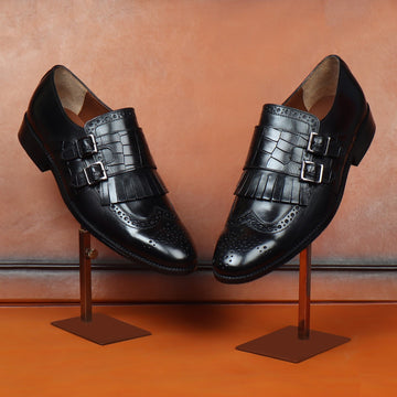 If it is a pair of hand finished Black leather monk shoes with stylish fringes...