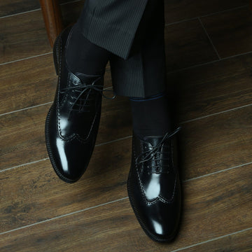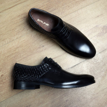 The hand-finished black Italian leather Designer Long Tail Stitched Design Oxford Shoes by BRUNE &...