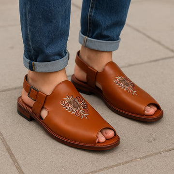 A pair of Tan Genuine Leather Peshawari Sandals by BRUNE & BARESKIN gives you the...