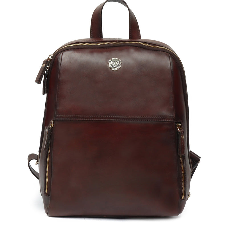 Backpack is a choice of every age to carry the things comfortably. We try to make impossible things to possible. Colors in Leathers are rare to seen, but we are here to ask "What is your choice of color in Leather?" It's a Tan Genuine Leather Ladies Backpack. This stylish chic leather laptop backpack by BRUNE & BARESKIN is amazing travel accessory. This sleek leather backpack is a perfect buy for the girls who want the style game on point. The multi-step pockets are there to carry the essentials for you. It has two Side pockets and one main pockets and one on back side of the bag. BRUNE & BARESKIN Signature Lion Logo on the front looks astonishing. Padded shoulder straps feel very comfortable while carrying this on the shoulders.