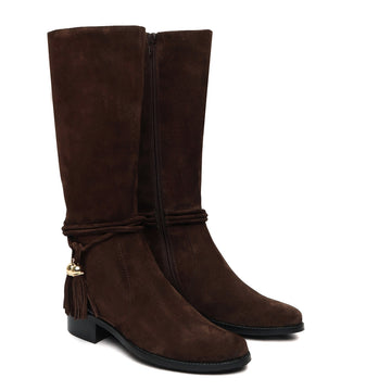 Introducing our Fold Down Suede Leather Tassel Long Boots - the perfect blend of style...