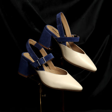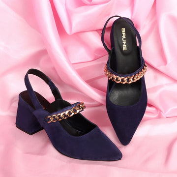 A modern, wearable sling back Block heel pump completes the feminine pointed toe design of...