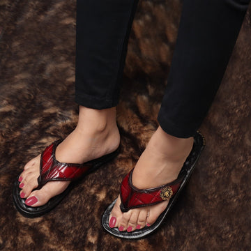 The V strap of these women's slippers is made in genuine leather strips. These lovely...