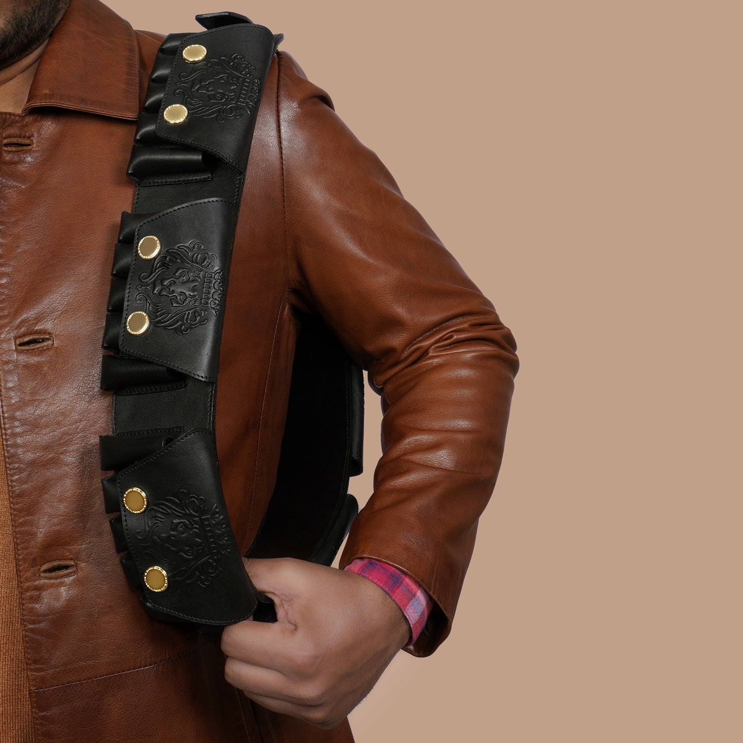 Safety & security both are important keys to keep a gun & bullets with you. This cartridge black belt is made to carry your bullets with with elegance and style. The snap buttons bullet holders provide the easy access. Adjustable strong & wide belt strap provides the convenience to carry and manage it according to your physique. It gives you a classy look while carrying it. This can be customized to any size weapon bullets. We offer name Initials and other personalization like color change, laser engraving of logos or slogans. For this please write to us by choosing the "Customization Tab"