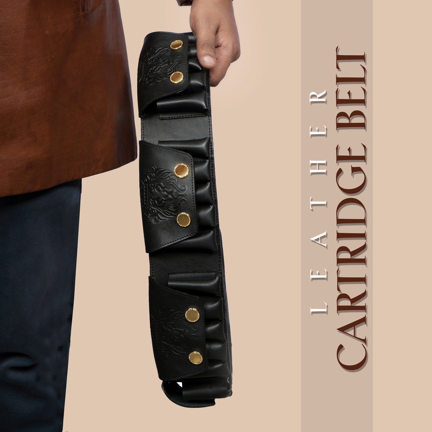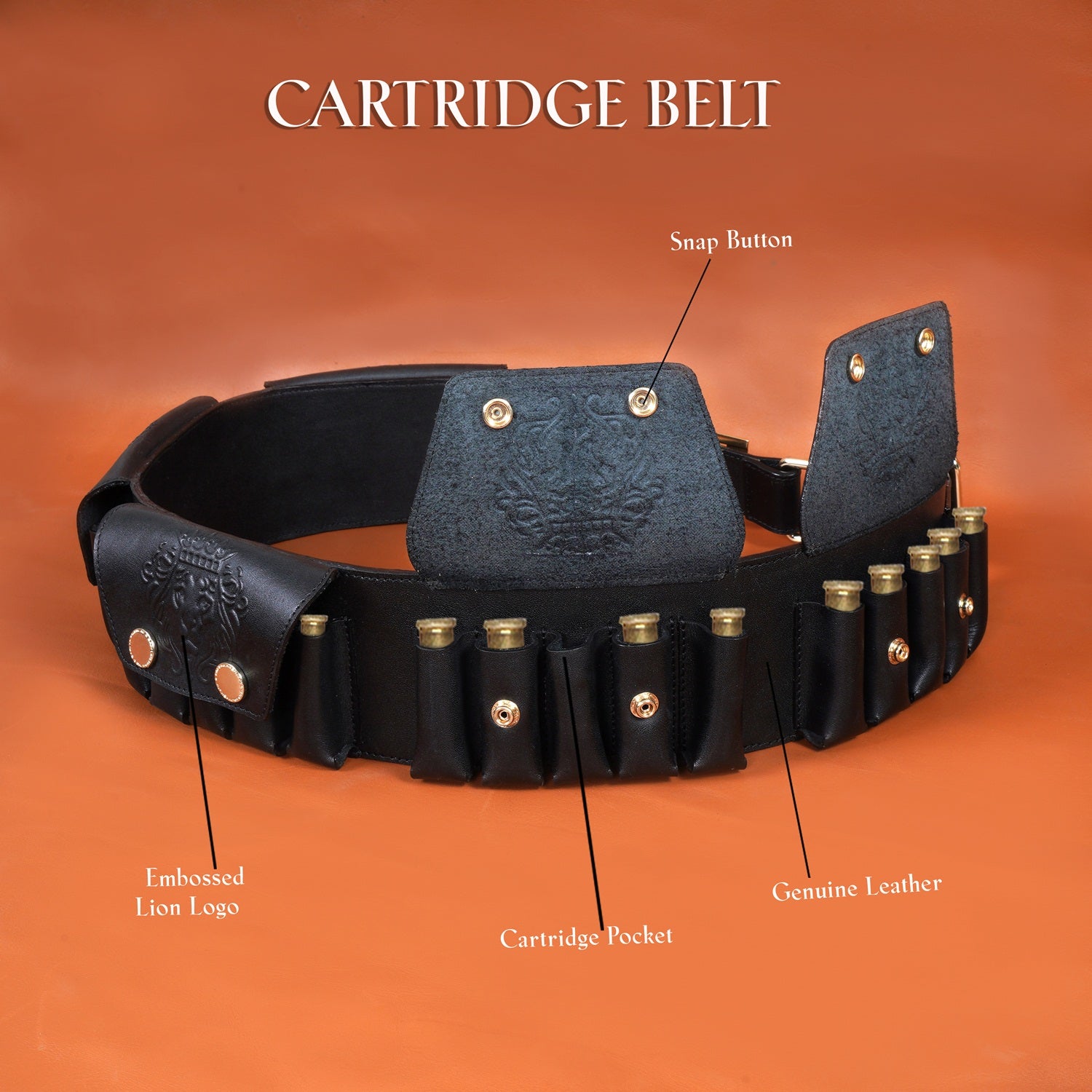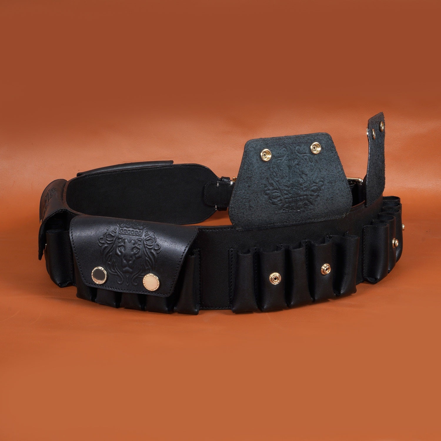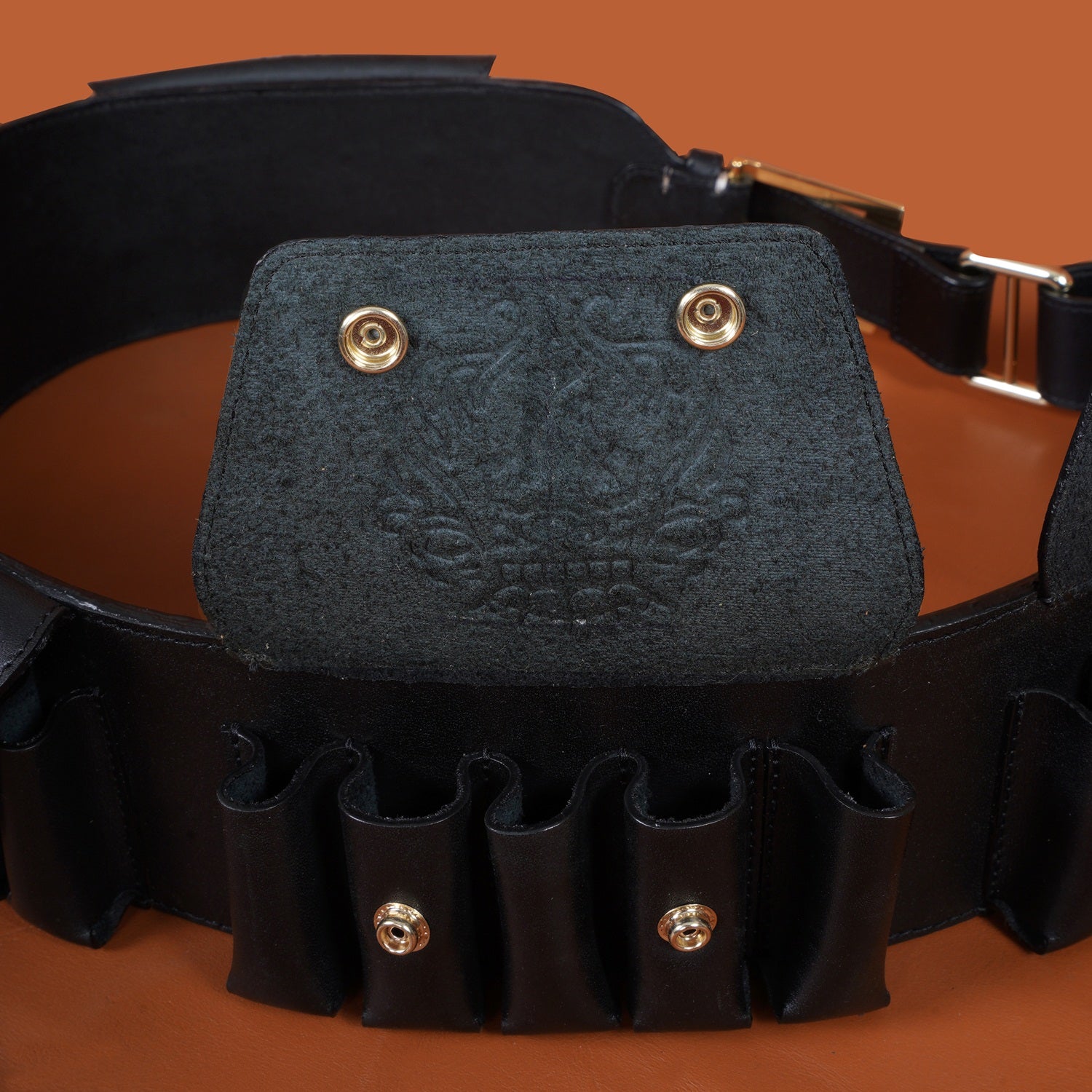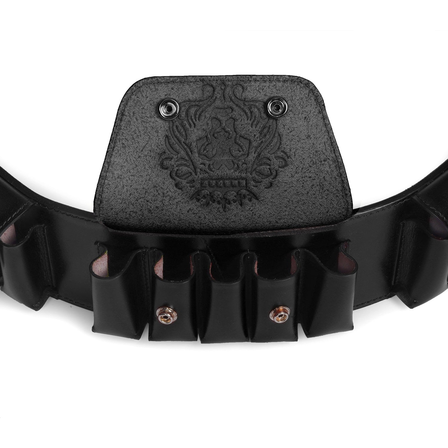 12 Bore Snap Pockets Black Cartridge Belt in Genuine Leather