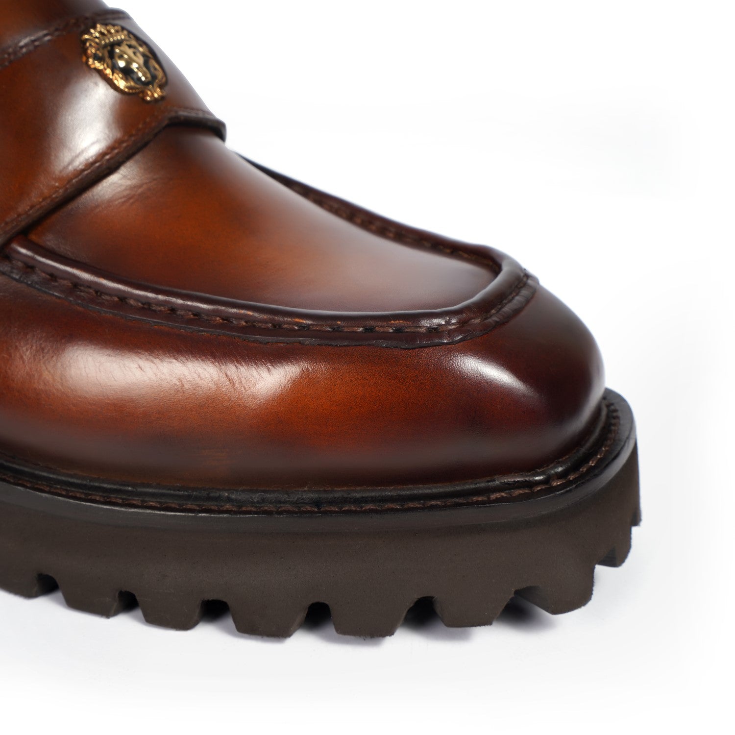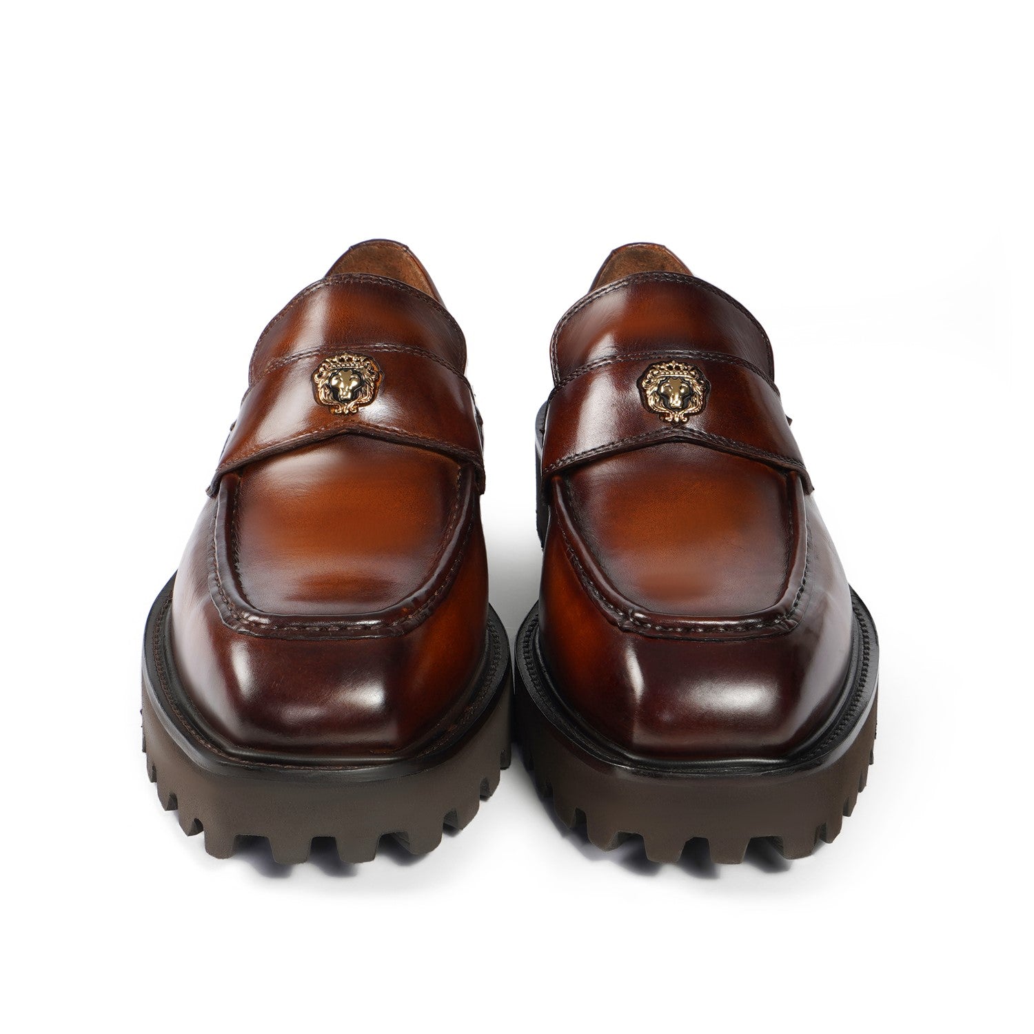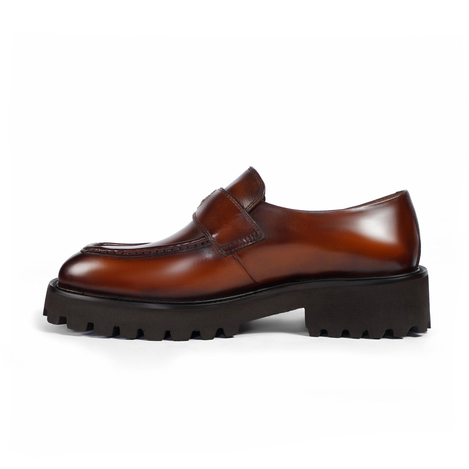 Burnished Brown Full-Grain Leather Chunky Loafers