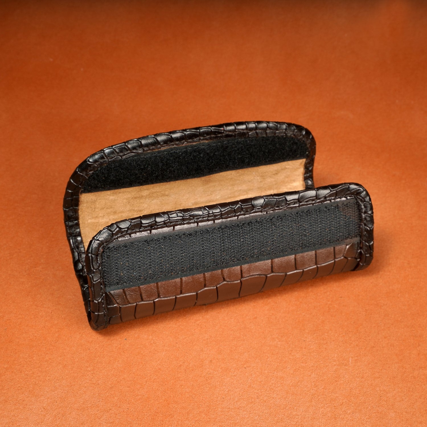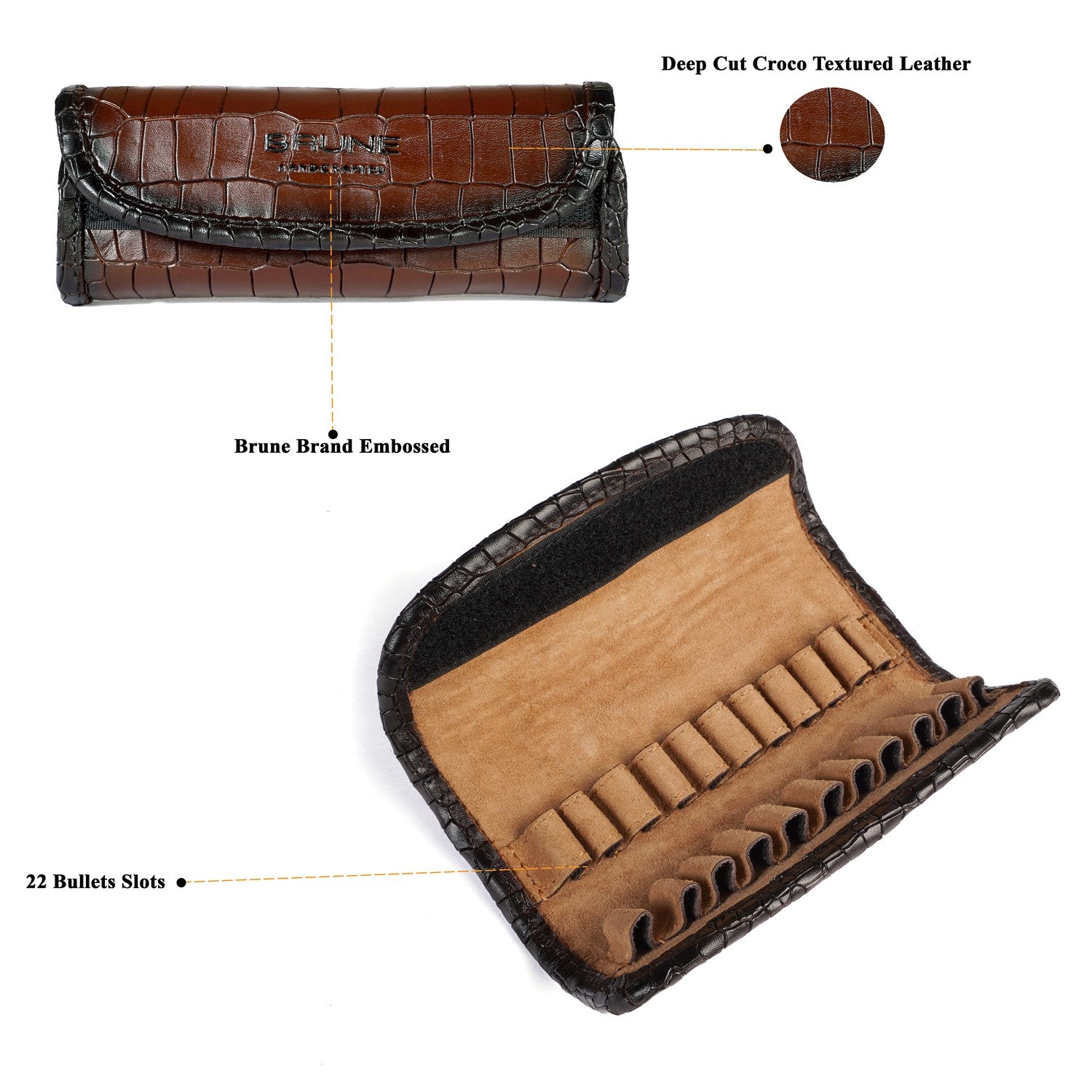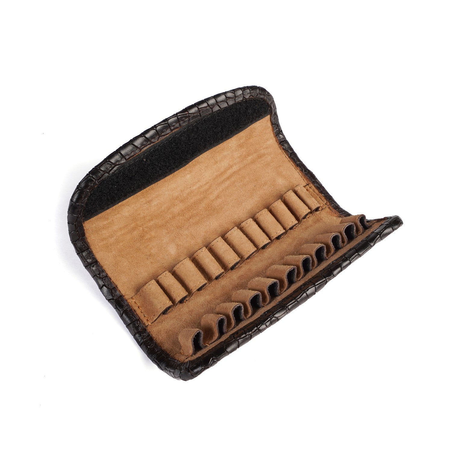 32 Bore Snap Pocket Cut Croco Dark Brown Cartridge Belt