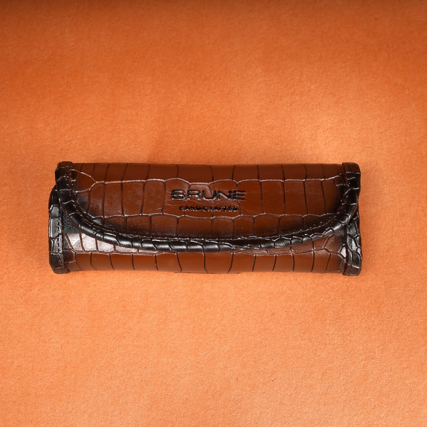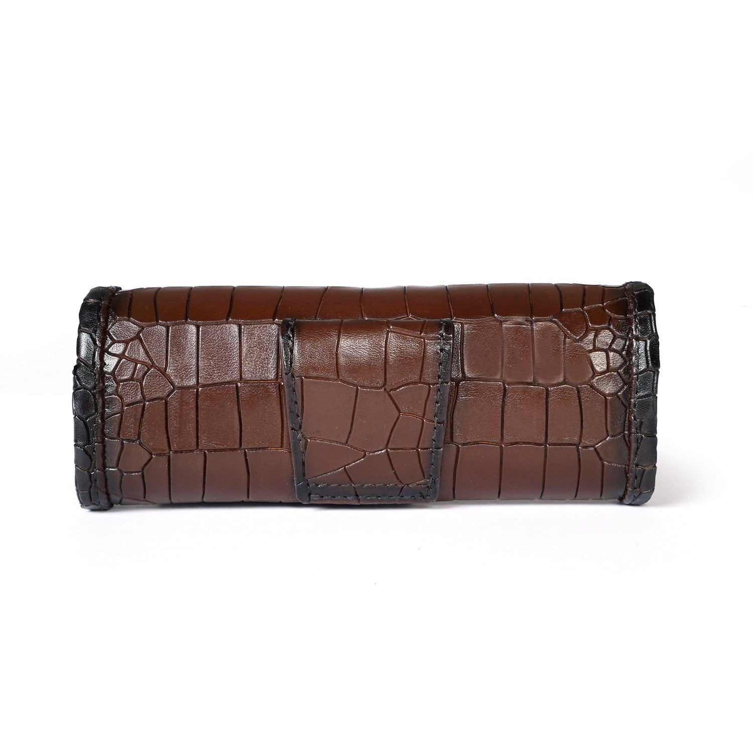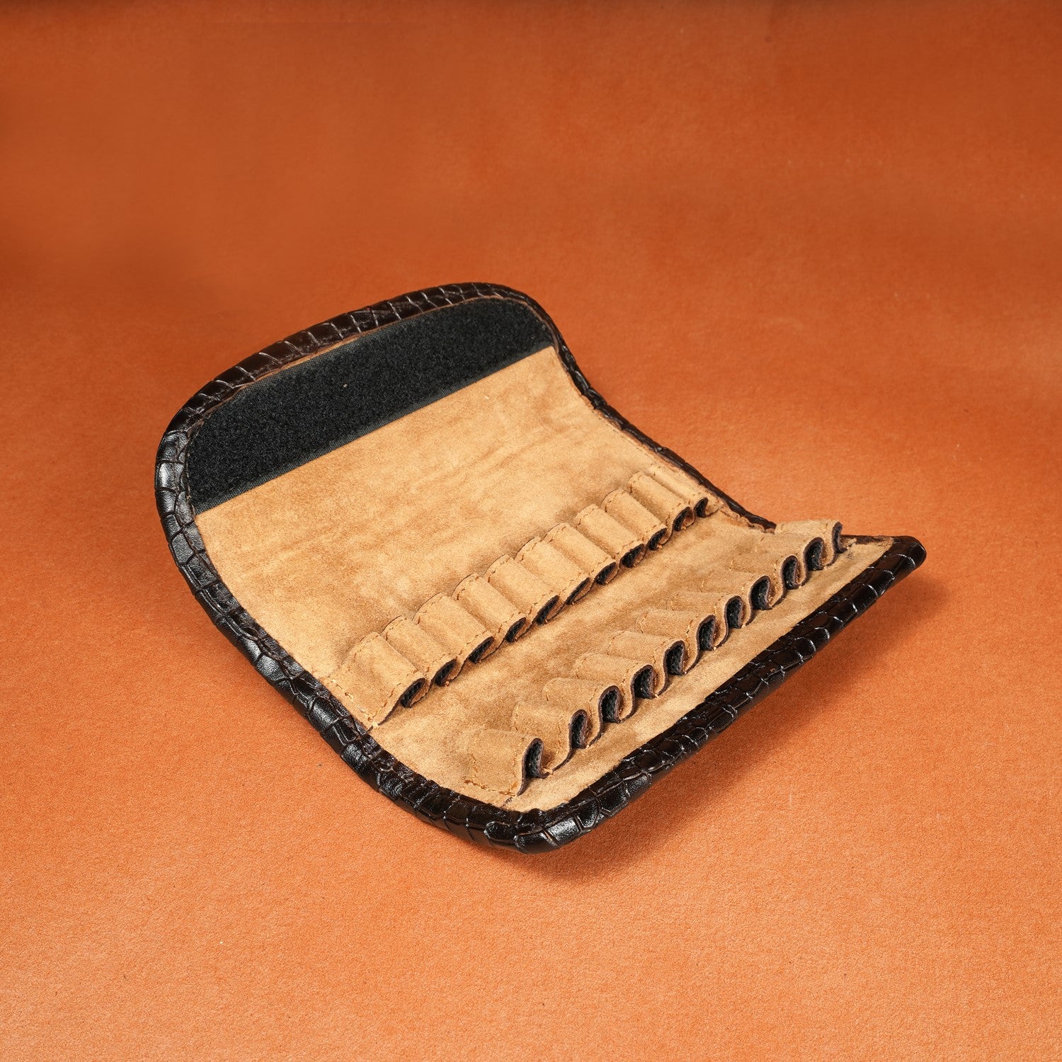 32 Bore Snap Pocket Cut Croco Dark Brown Cartridge Belt
