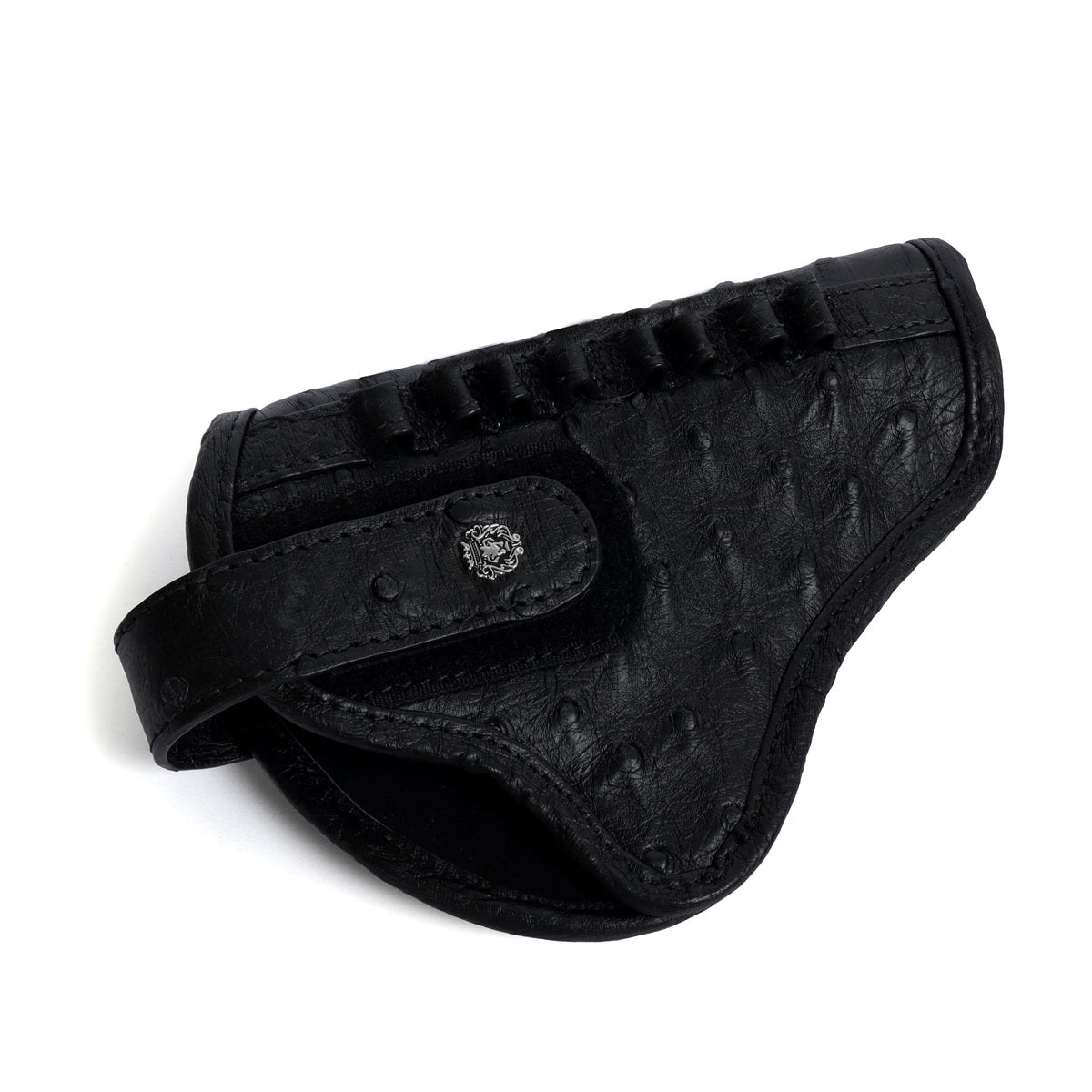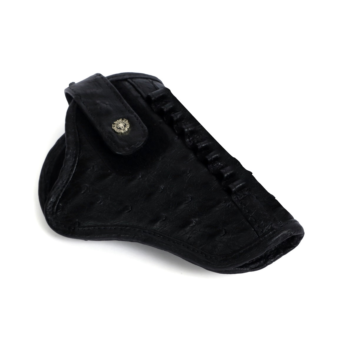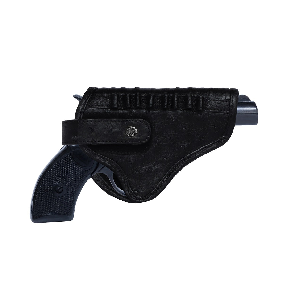 .32 Revolver Handgun Ammo cover in Black Authentic Ostrich Leather With Belt Loop (MTO)