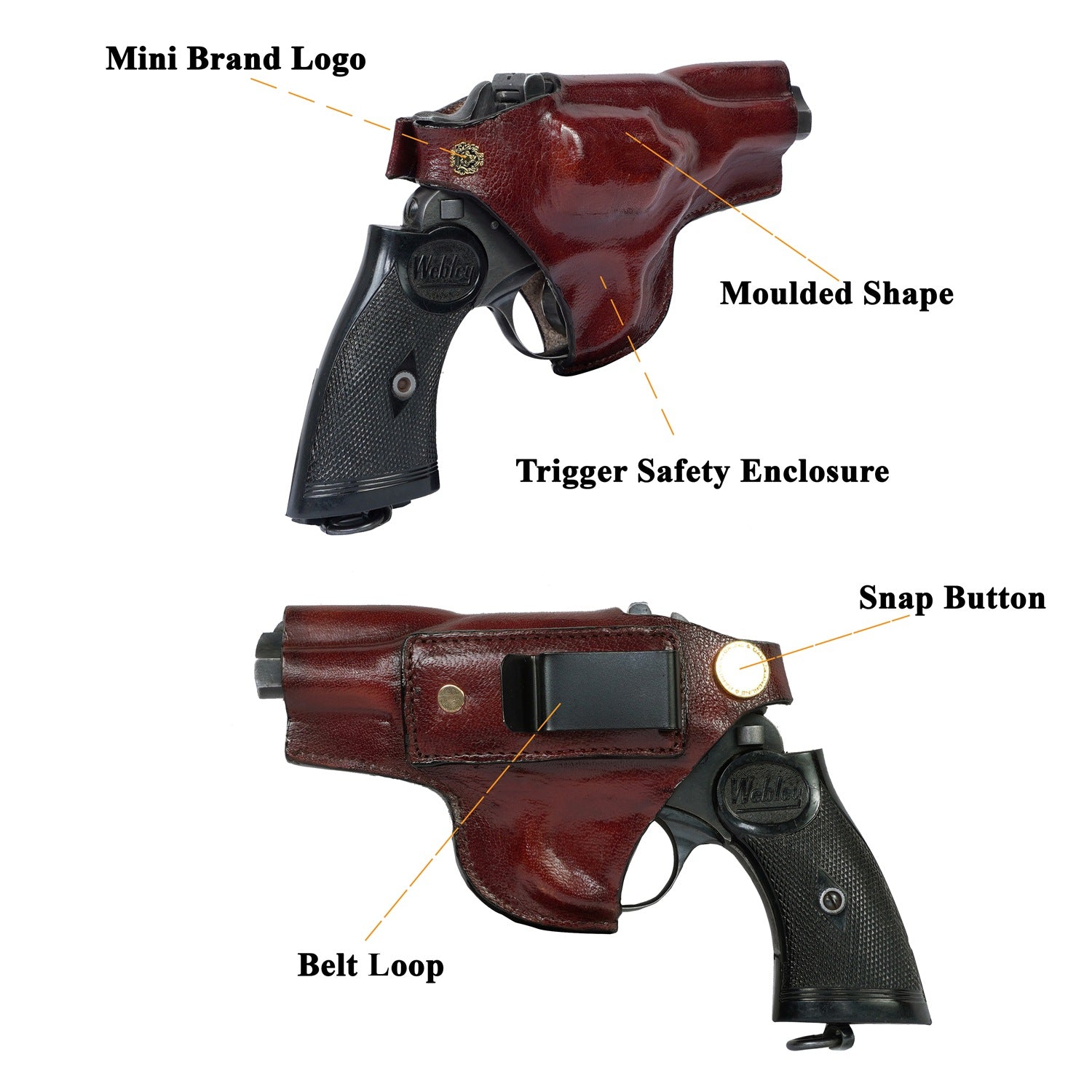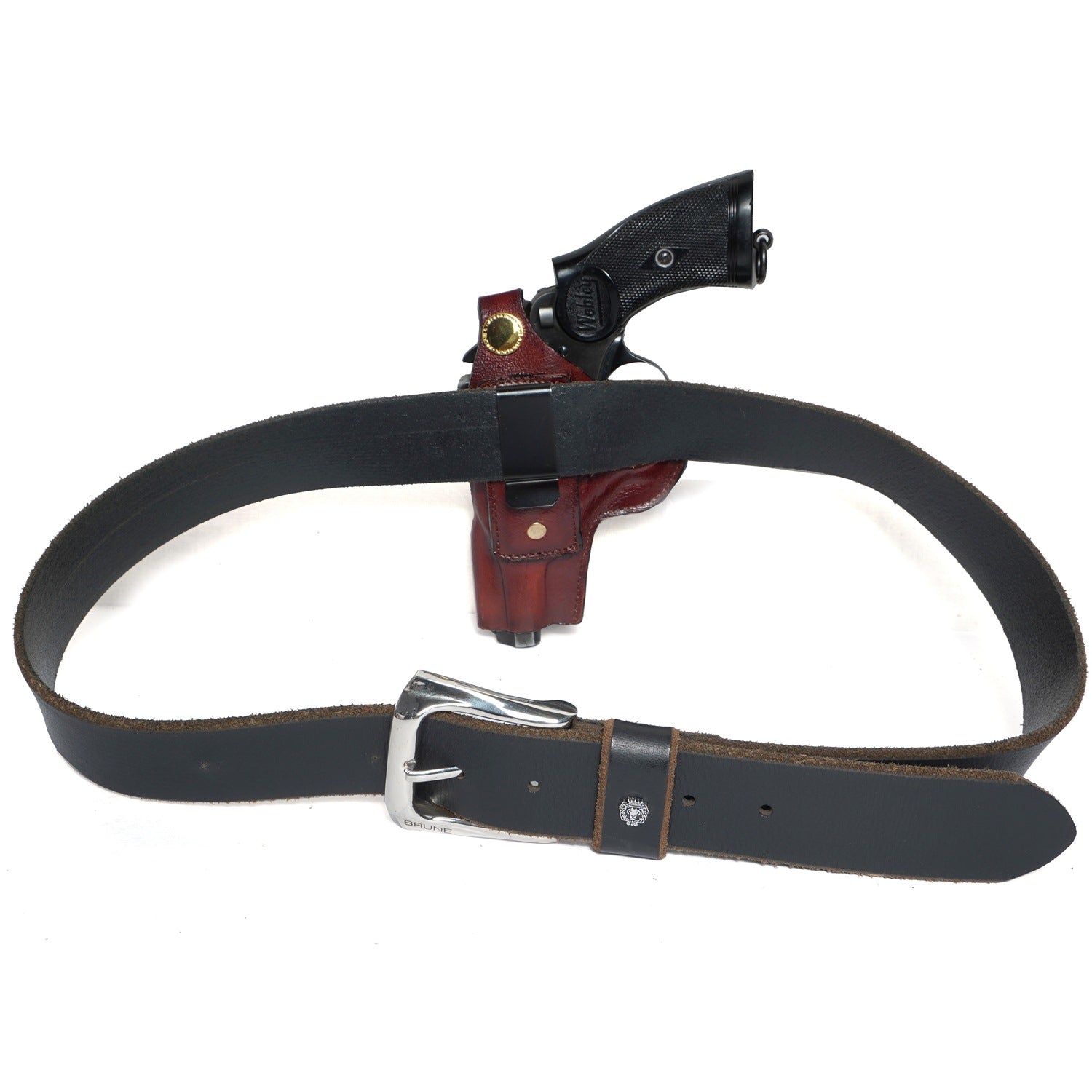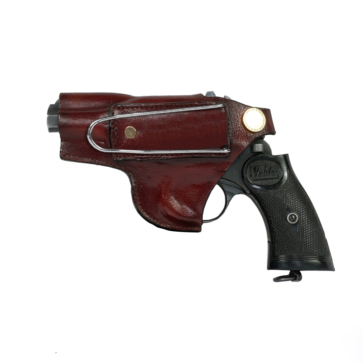 Introducing the Brune & Bareskin .32 Brown Wet Moulded Revolver Cover, a meticulously handcrafted piece of art that showcases the perfect blend of luxury and functionality. Skillfully made from genuine leather through a long and precise process. It also adds a secure closure for the weapon by locking it in. This brown-colored holster can be customized with your name initials for a truly exclusive personal touch. Keep your revolver safe and secure in style with this Brune & Bareskin premium weapon covers and holsters.