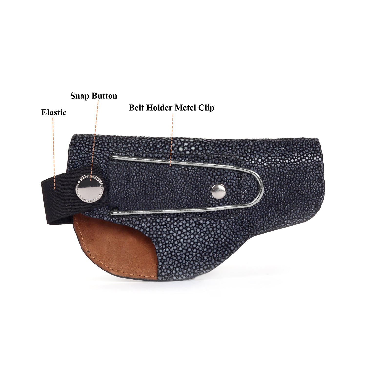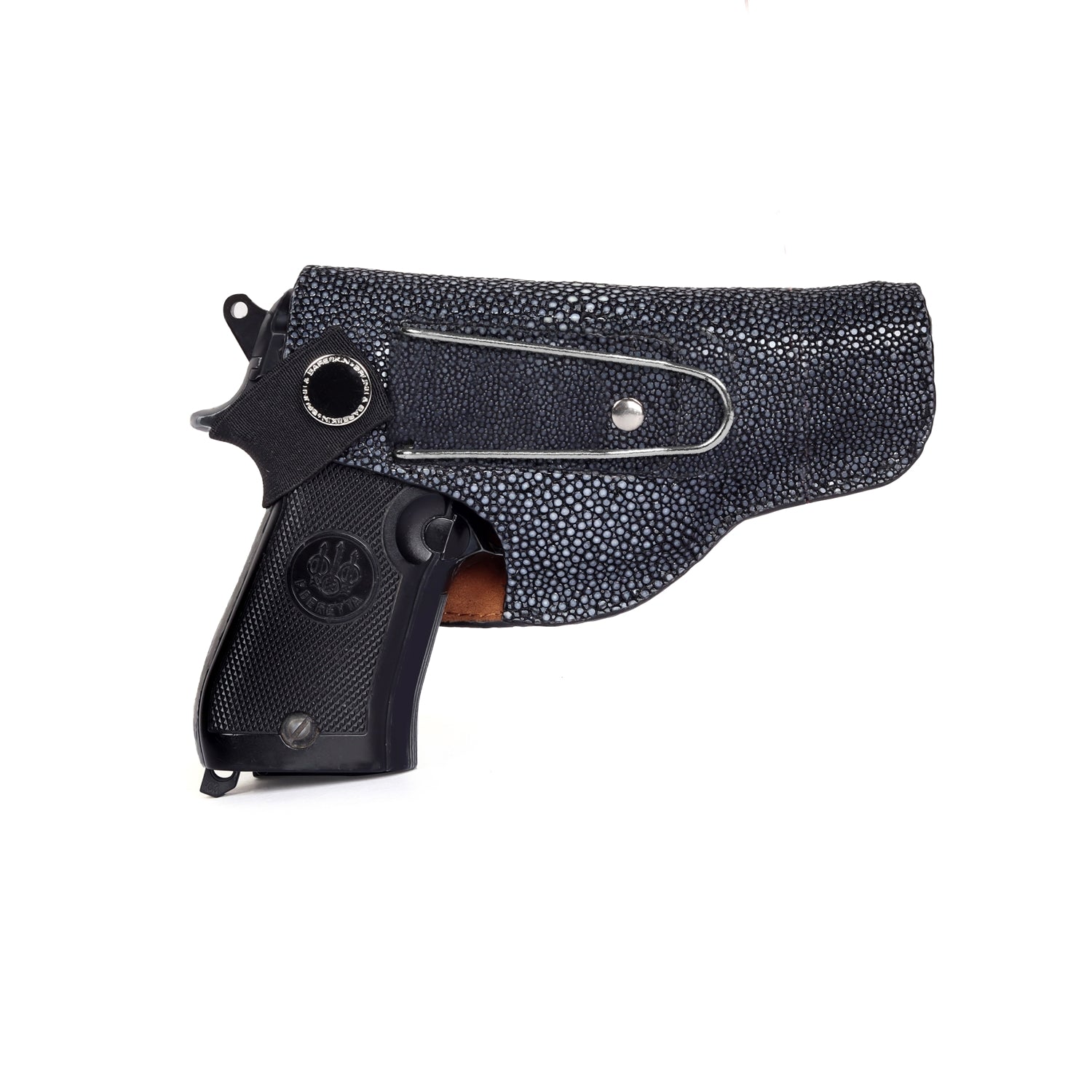 .32 Grey Pistol Cover with Metal Loop in Exotic Stingray Fish Leather