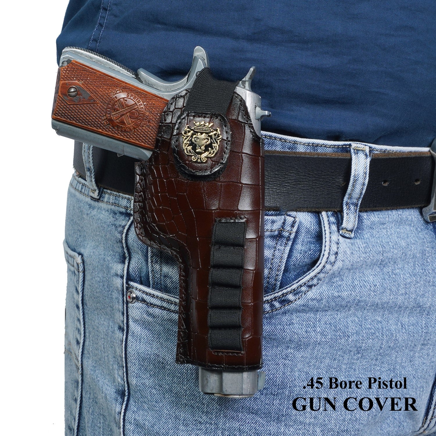 .45 Weapon Ammo cover With Bullet Holder Dark Brown Deep Cut Leather Handgun(MTO)