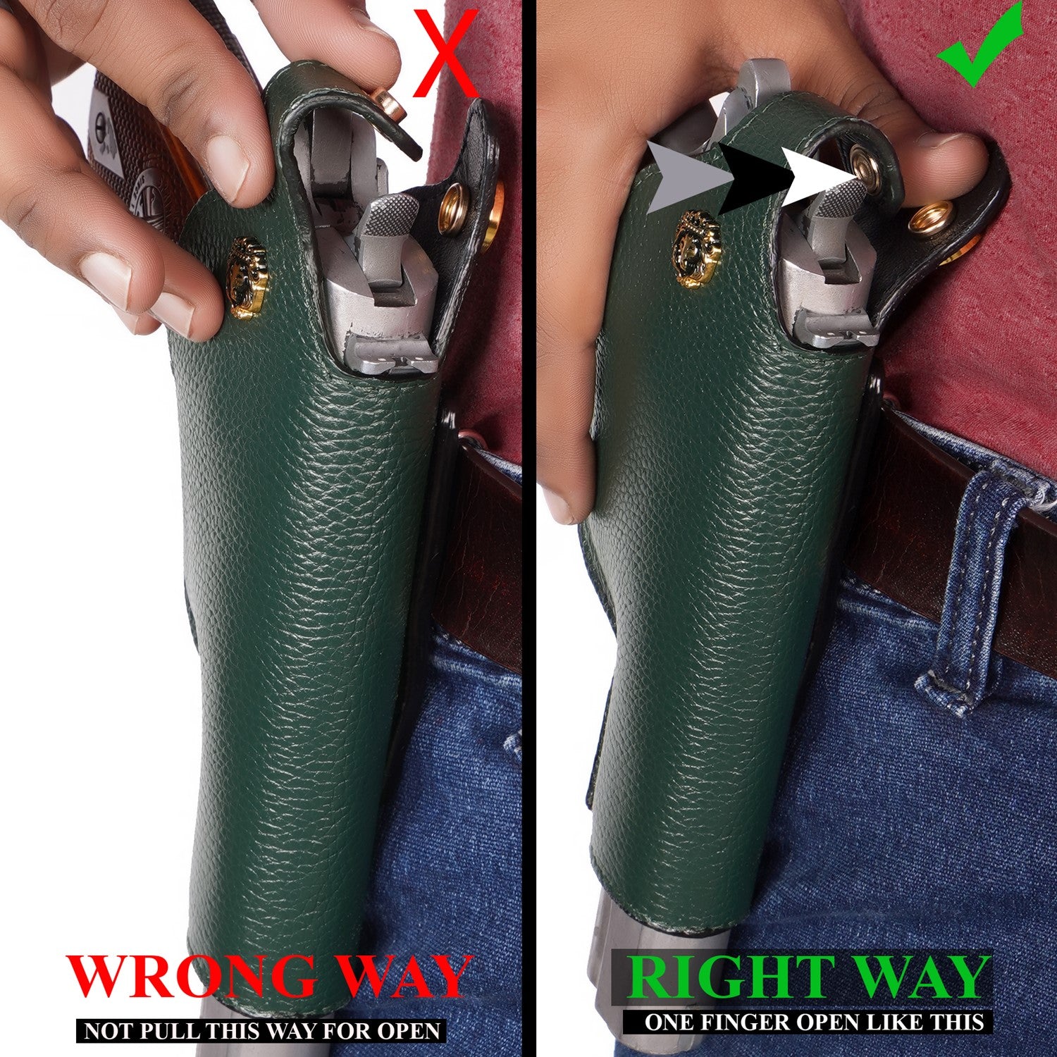 .45 Weapon Handgun Ammo cover Green Textured Leather