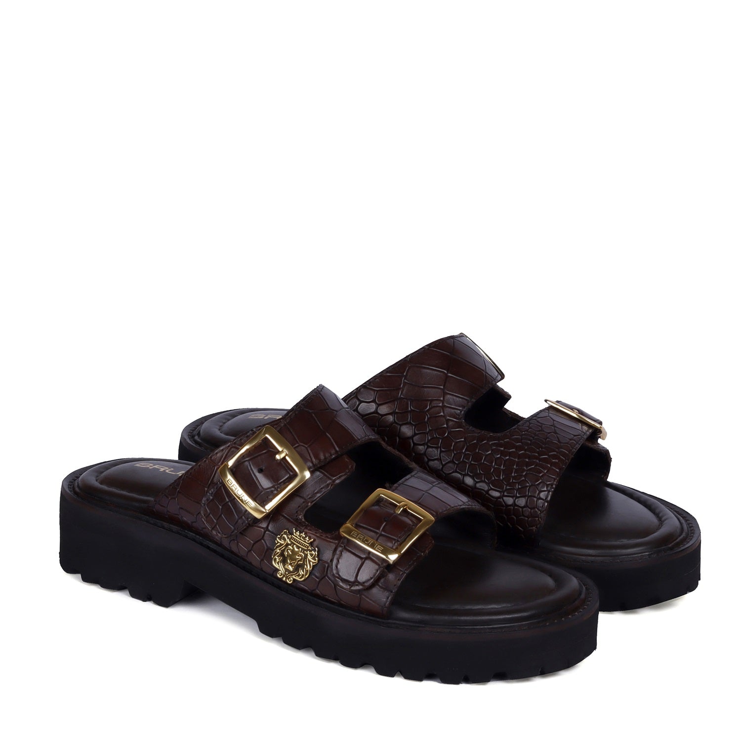 These Croco Textured Slippers are the luxurious piece of beauty from Brune & Bareskin. These light-weight slippers are a must-have of the season. Deep cut Croco Adjustable buckle strap spells freedom and the casual lifestyle. The gel injected memory foam base is designed to provide you comfort while walking. We use special layering techniques to keep the base cozy and retain its shape. Croco Adjustable buckled strap endows the extra room for every foot. The wider straps Design with BRUNE & BARESKIN Lion Logo enhance the elegance further. Anti-Skid Rubber outer sole ensures the perfect walking grip. The ultra-lightweight Lug sole makes it ideal footwear for all-day-long wearability and the thick high lightweight sole complements the comprehensive look. Carry these with Jeans, Shorts, Capri's, and other casual wear to be a style leader.