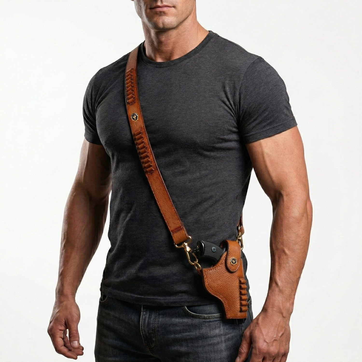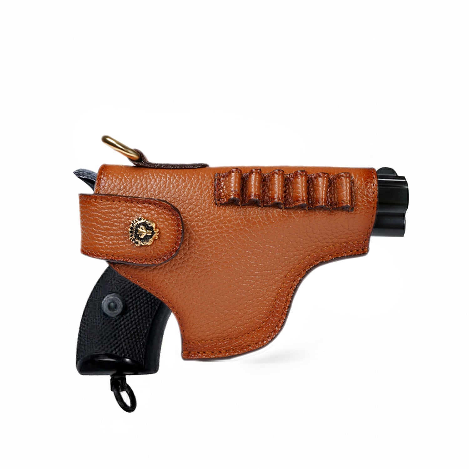 Adjustable Strap .45 Revolver Cover in Tan Textured Leather With Bullets Holder