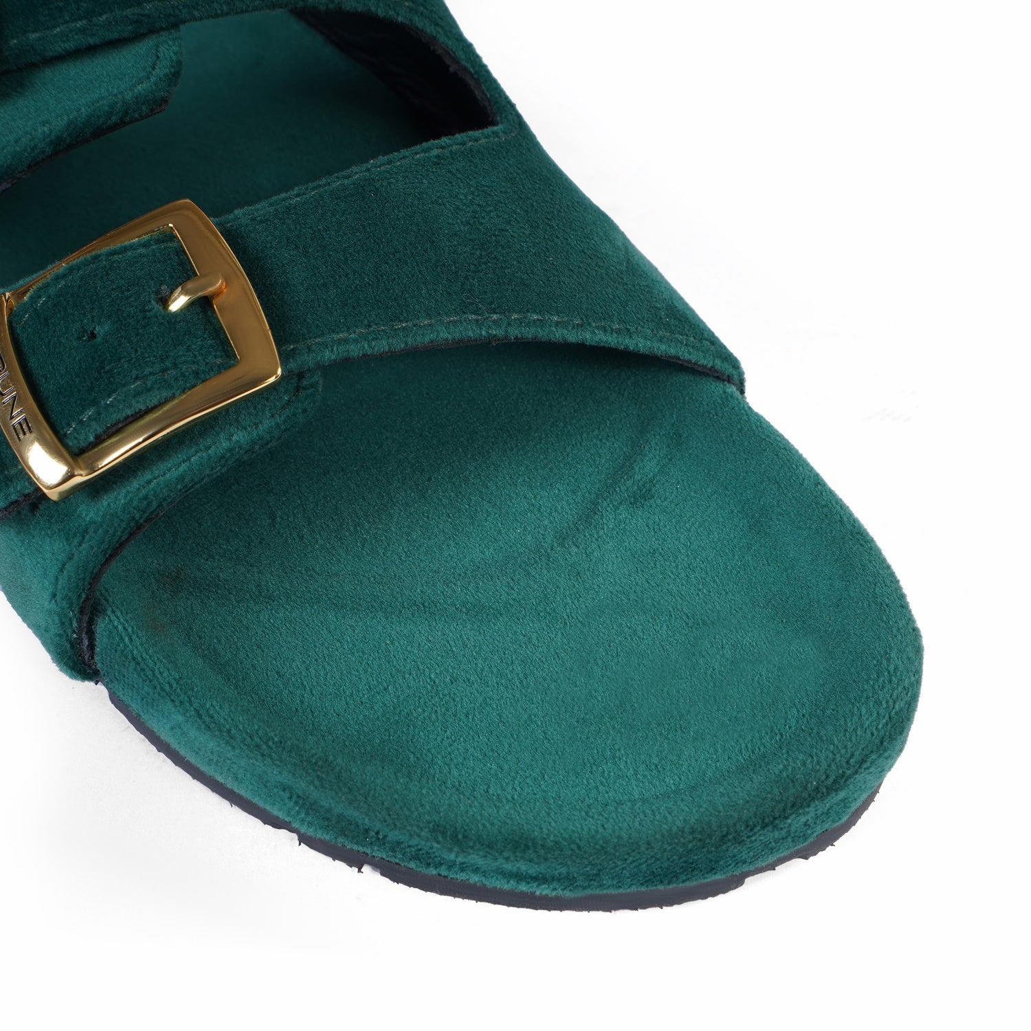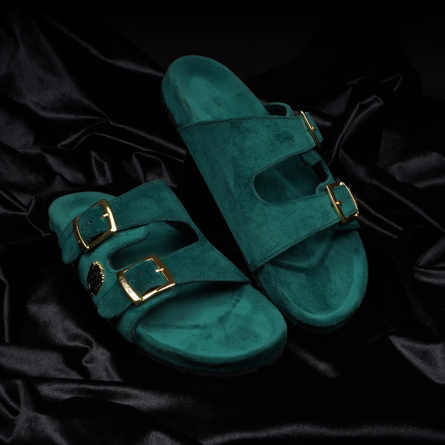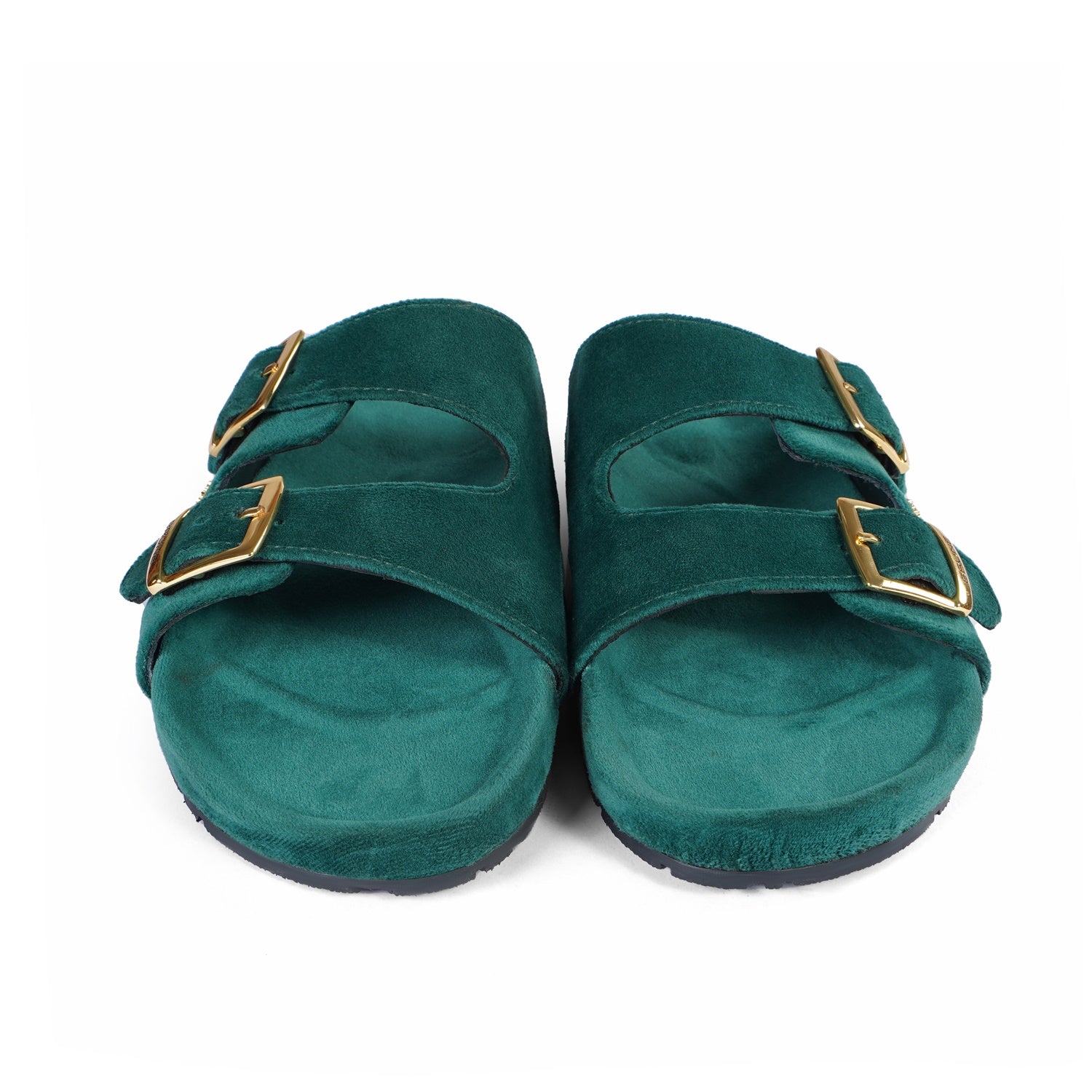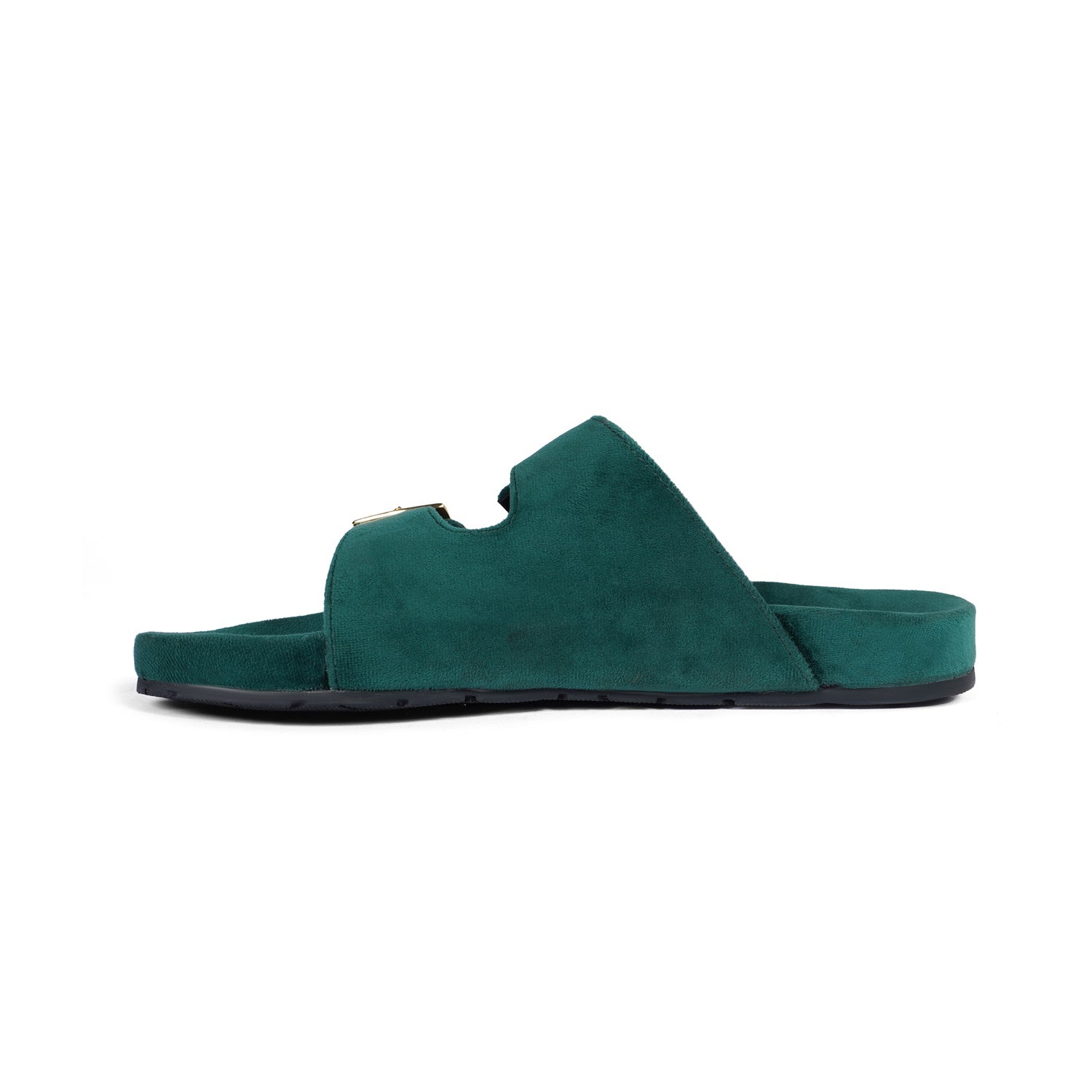 Adjustable Velvet Buckle Slide-in Slipper in Green