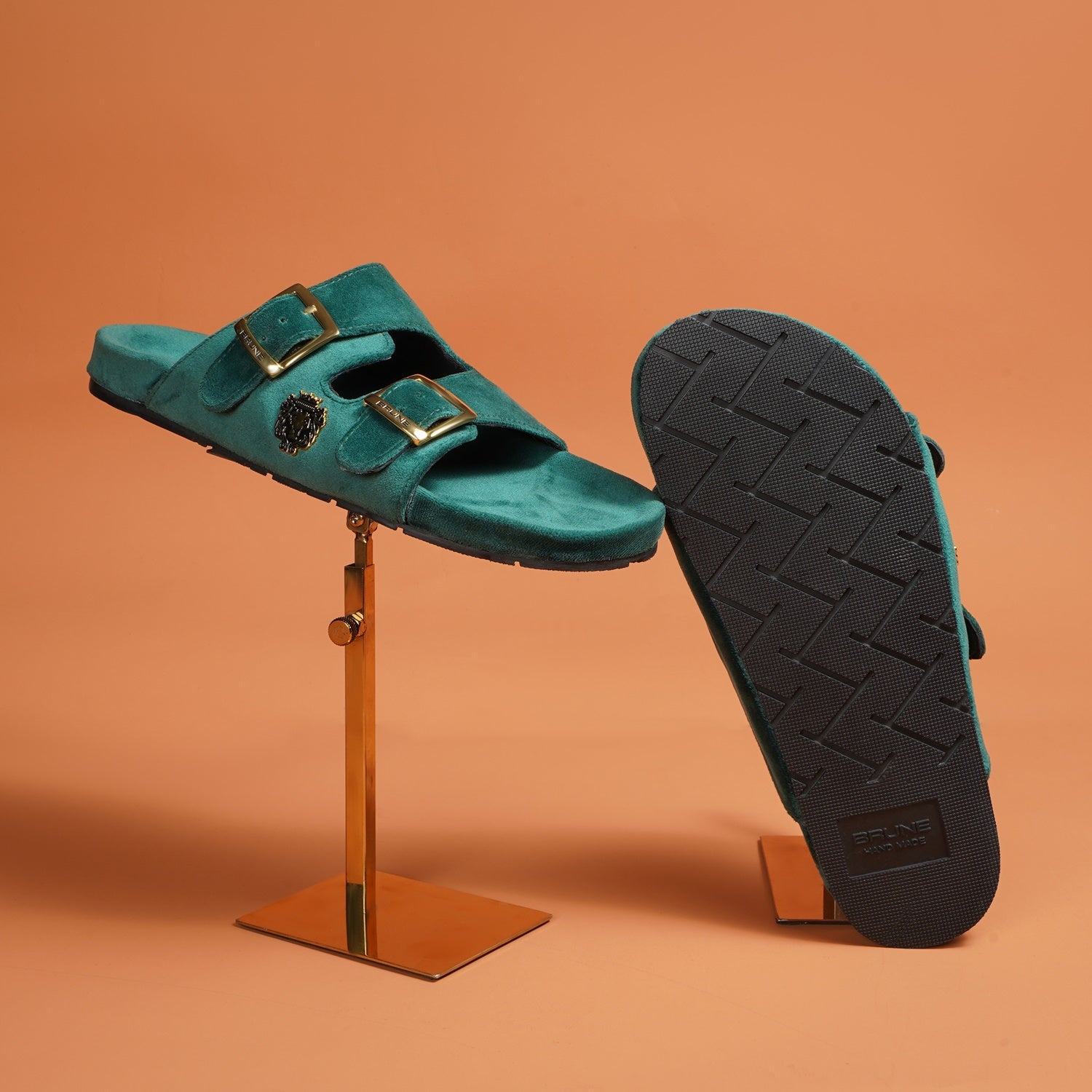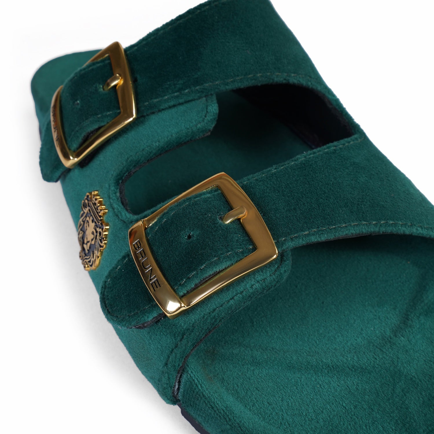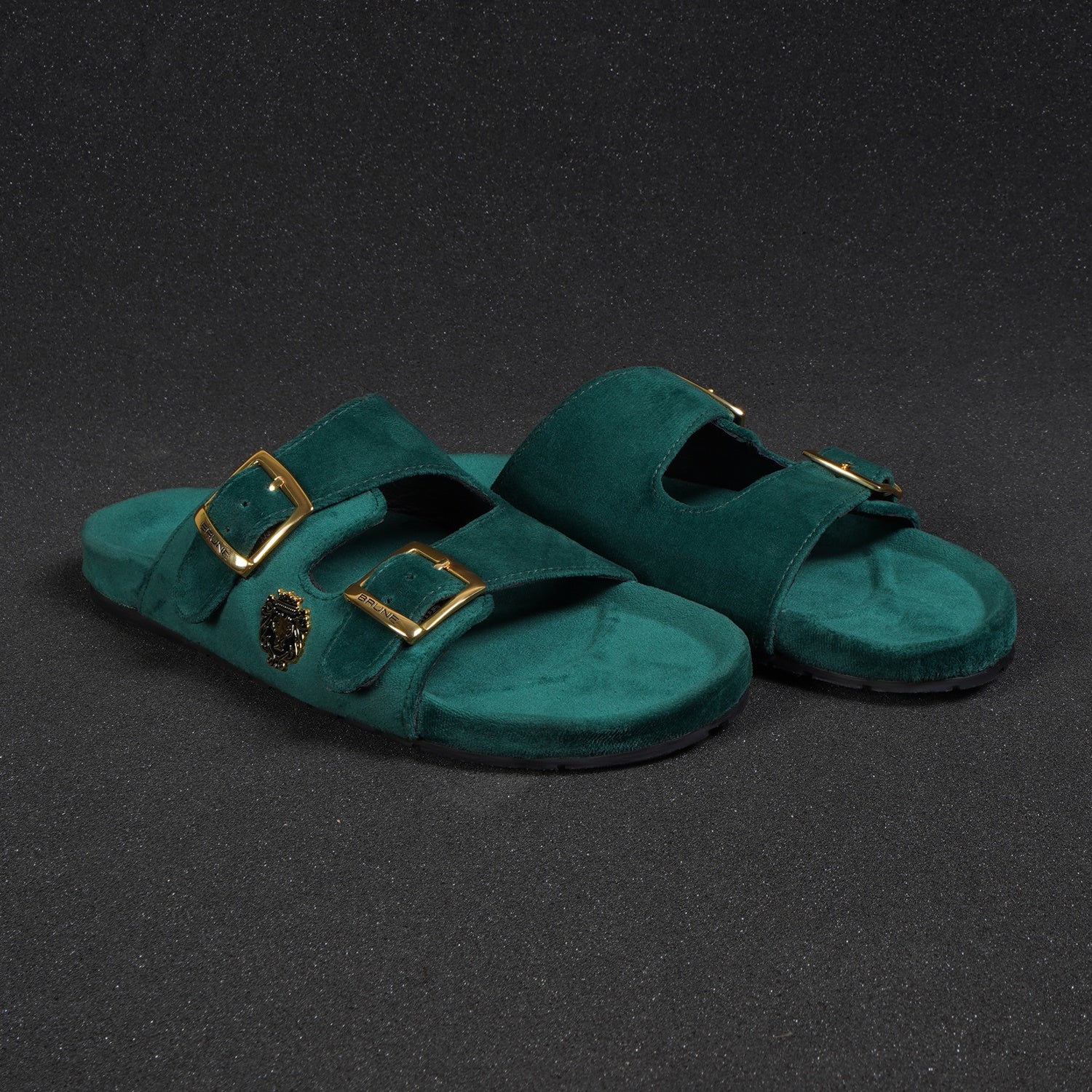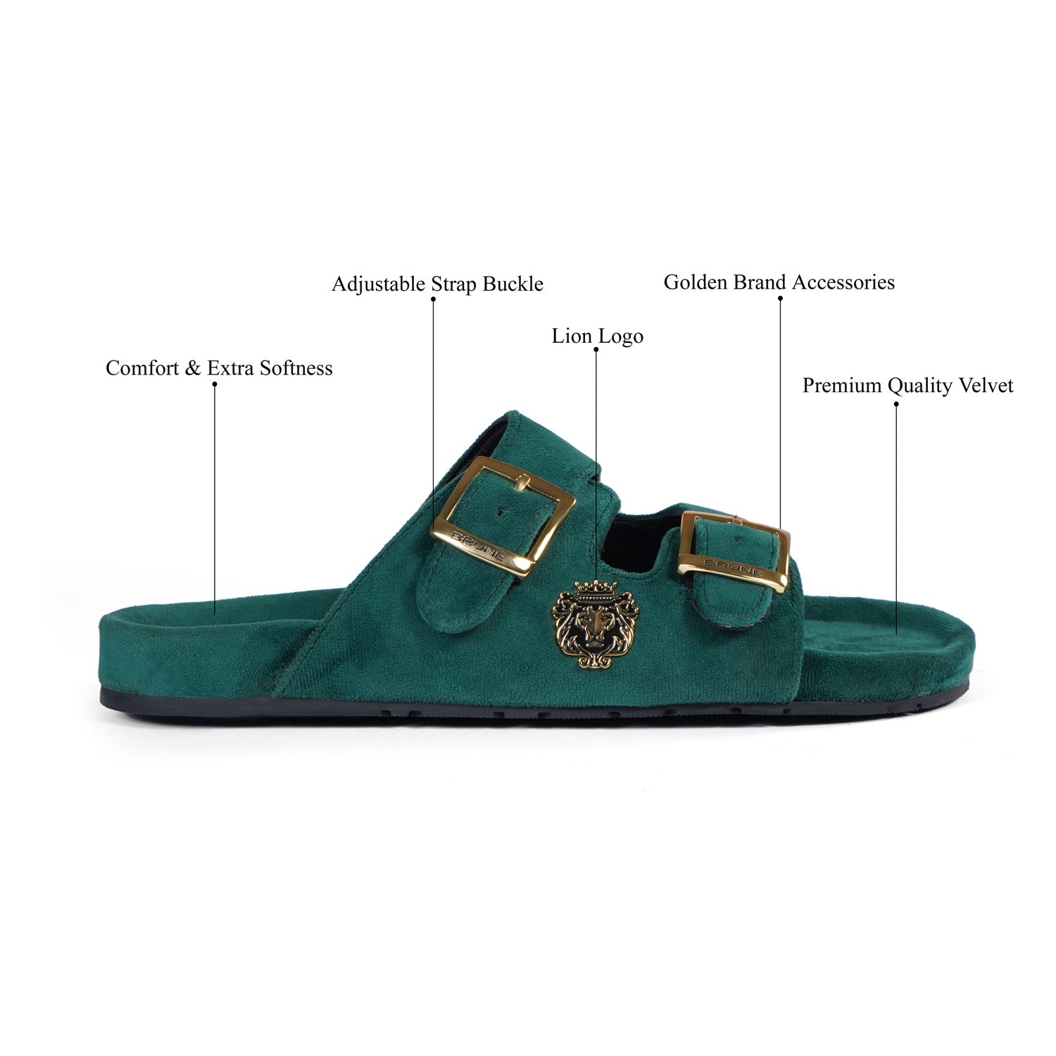 Adjustable Velvet Buckle Slide-in Slipper in Green