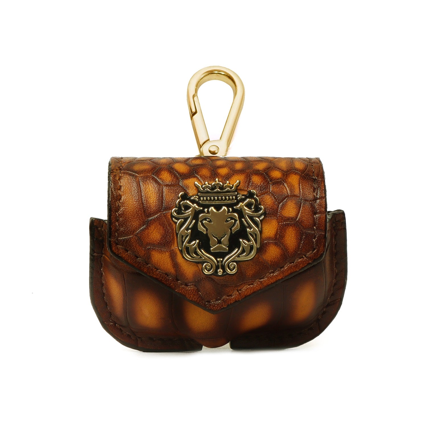 Air Pods-Pro Smokey Yellow Croco Textured Leather Carrying Case