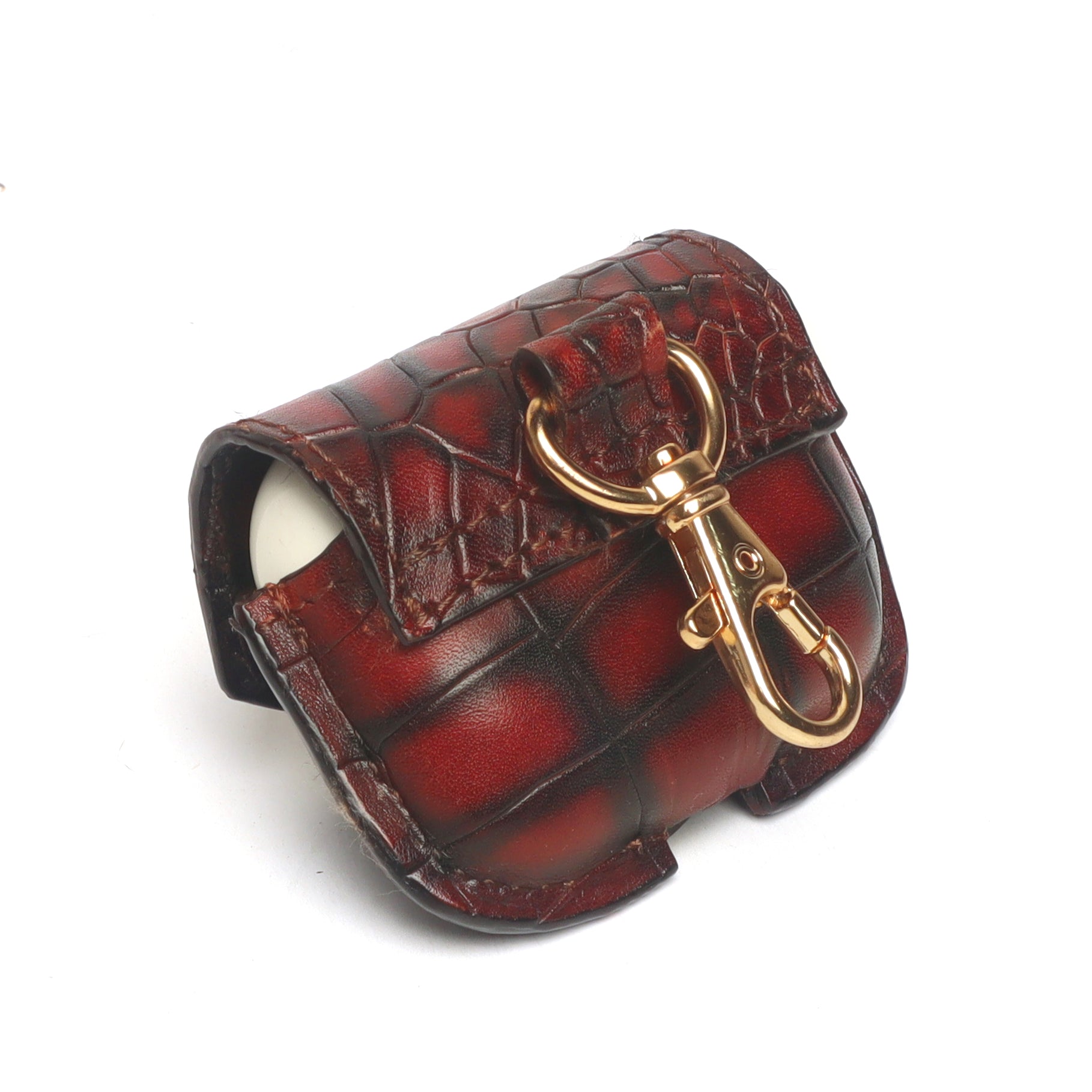 Air-Pods Pro Smokey Wine Croco Print Leather Carrying Case by Brune & Bareskin