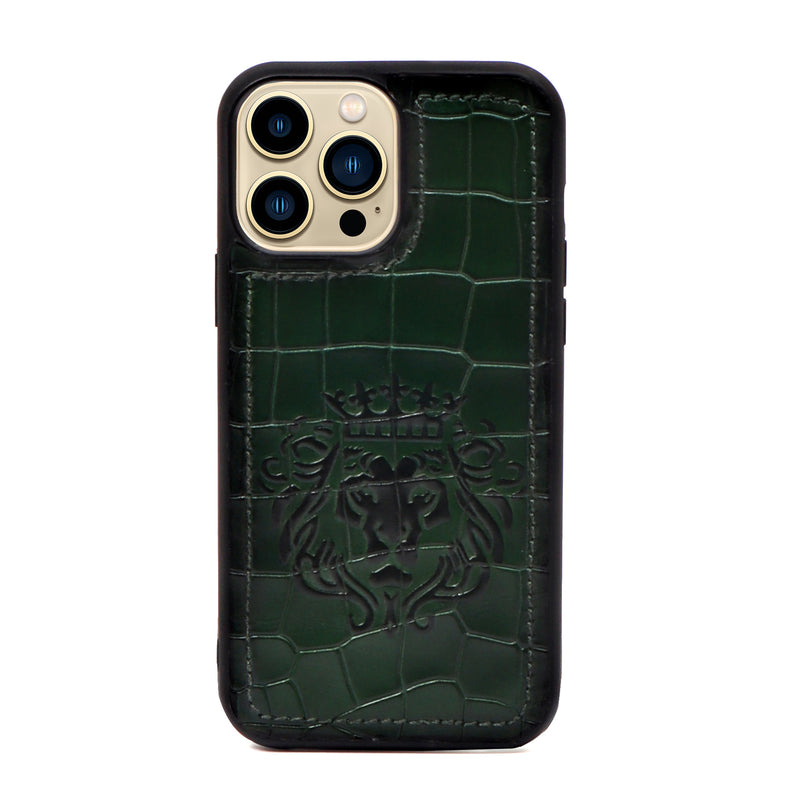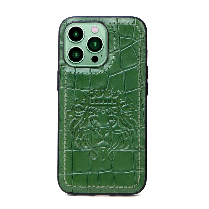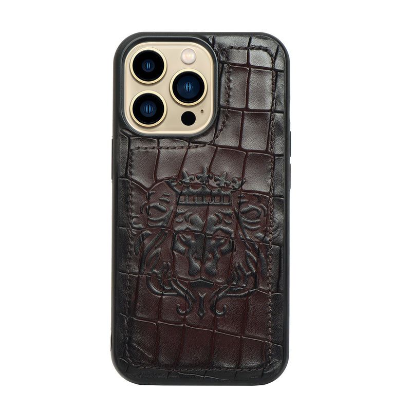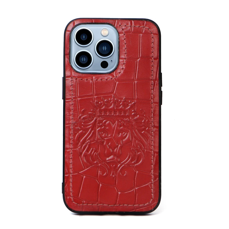 The latest Apple iPhone series genuine leather mobile covers are made to give you an extra style edge. The elegant mobile cover you would love to have. This deep-cut Croco print leather cover leaves a remarkable mark of style. The hand-stitched around the border provides more rigidity. The contrasting Lion Embossed in the middle of the cover enhances the elegance further. This high-veg Grey leather Cover will surely serve you for a very long time. You can get it customized in your favorite color shade with Name Initials.