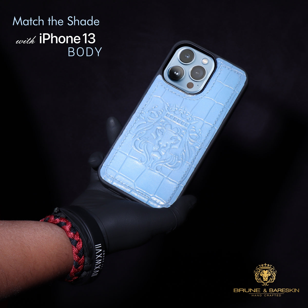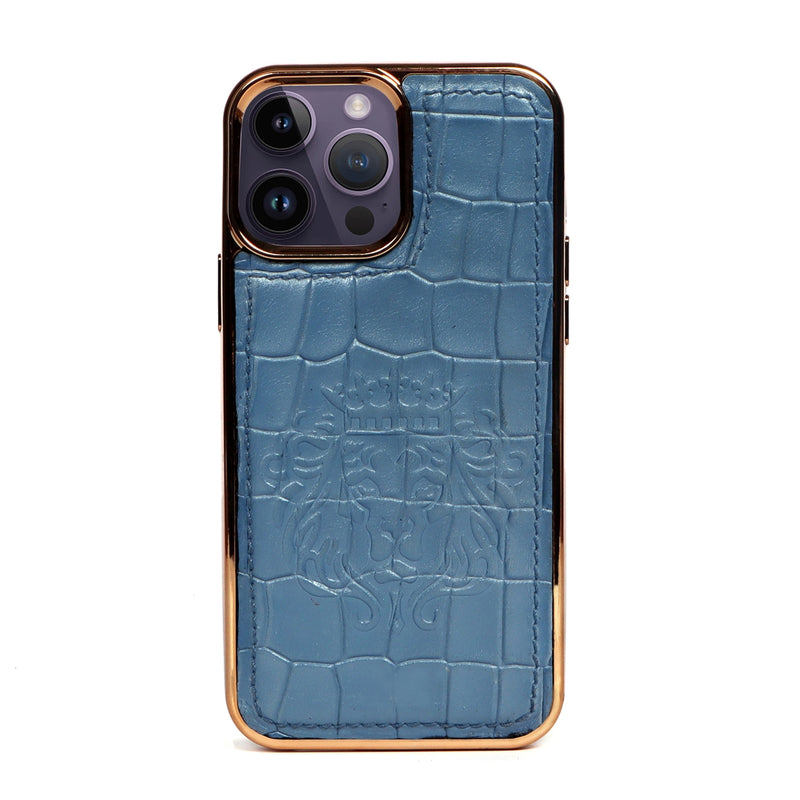 Apple iPhone Series sky Blue Deep Cut Lion Embossed Mobile Cover by Brune & Bareskin