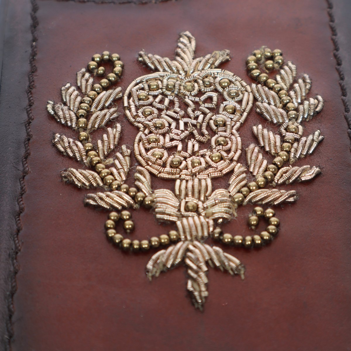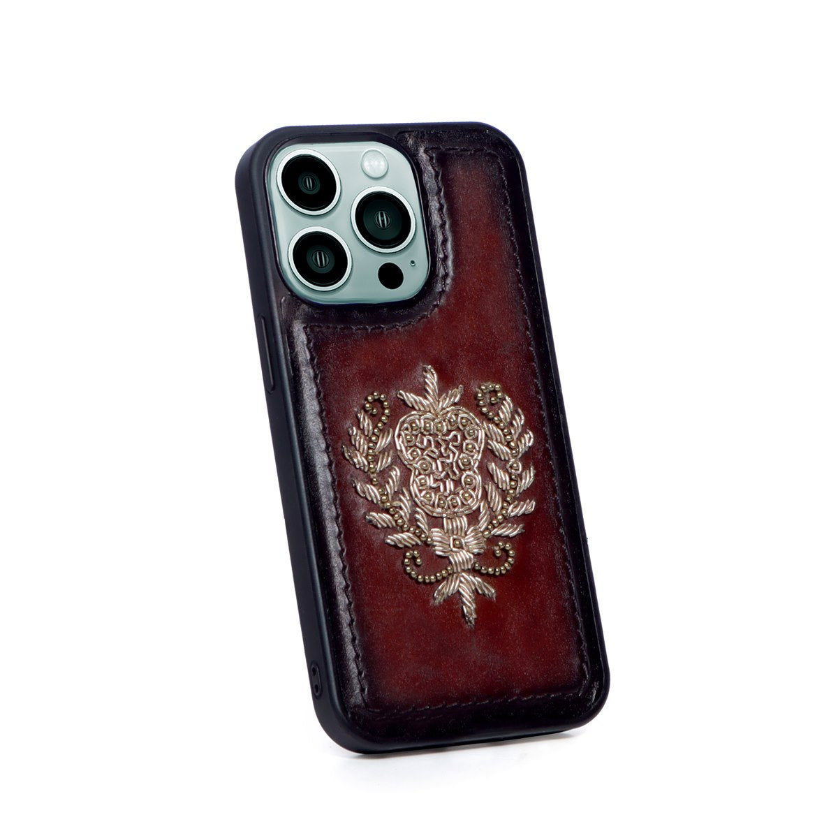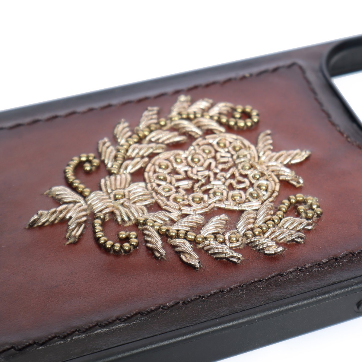 Apple iPhone Series Dark Brown Leather Crest Zardosi Mobile Cover