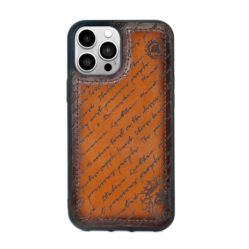 Apple iPhone Series Mobile Cover with Tan Leather Laser Engraving Design