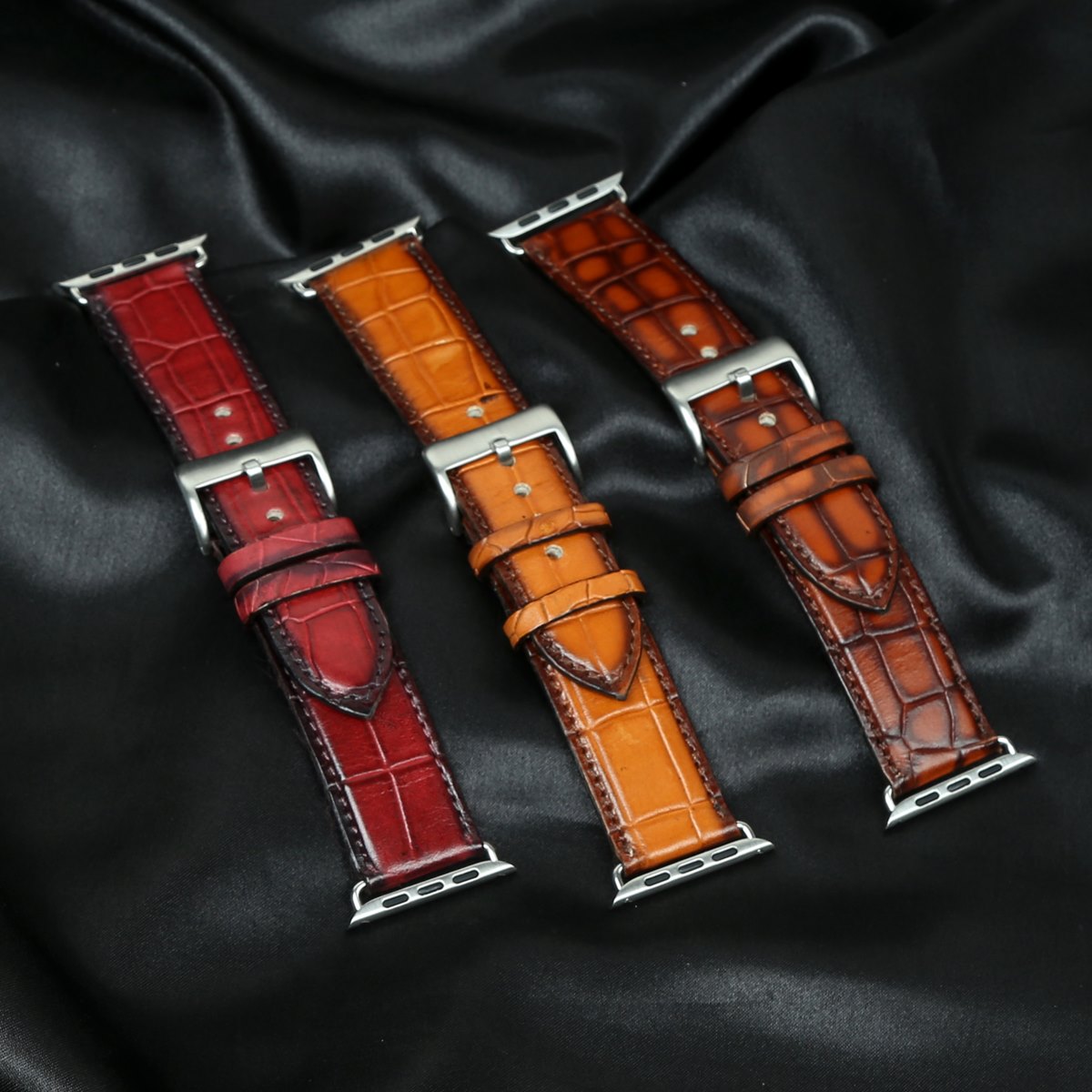 BRUNE & BARESKIN'S new input towards exclusive watch strap lovers, It doesn't need more designing as it's revealing classy impact with deep cut Croco leather texture. The smokey hand-finished straps boast a very stylish and luxurious look. Happy to share that one can get a customized watch strap with their choice of color. Adjustable strap for any wrist size or can customize according to your sizing. Include these straps with your casual & formal outfits. These watch straps can get matched with our branded accessories too.