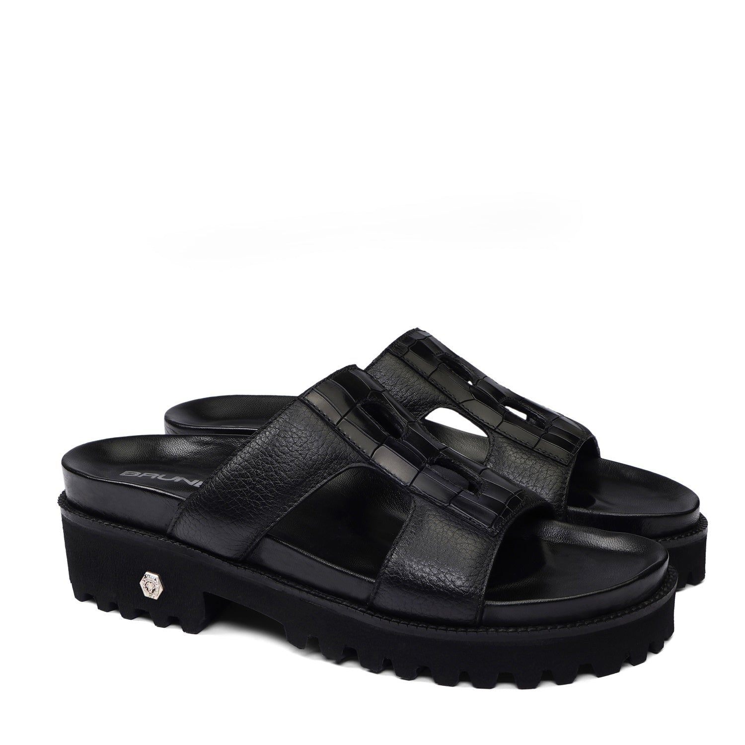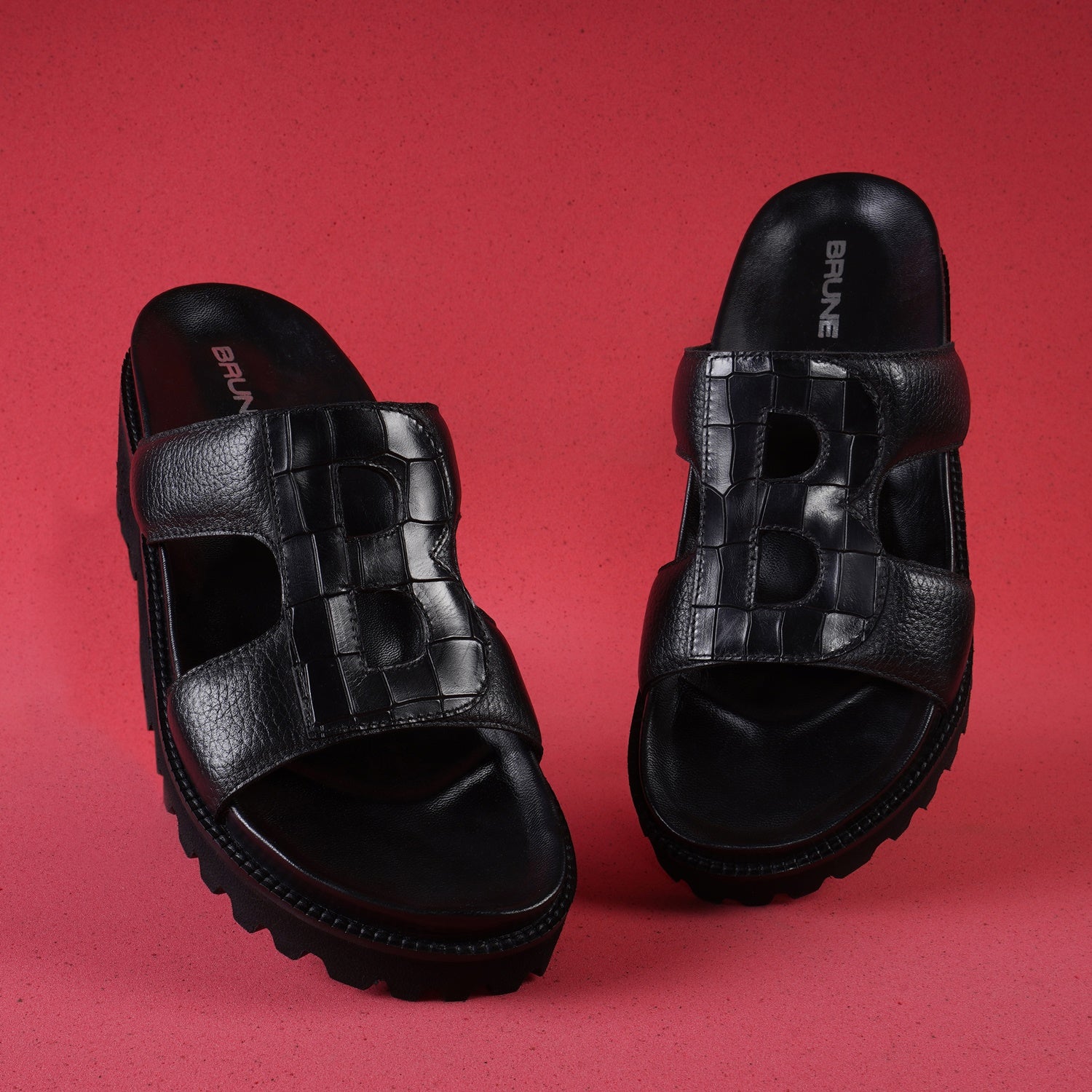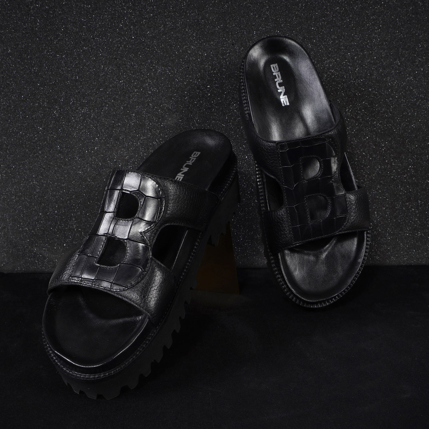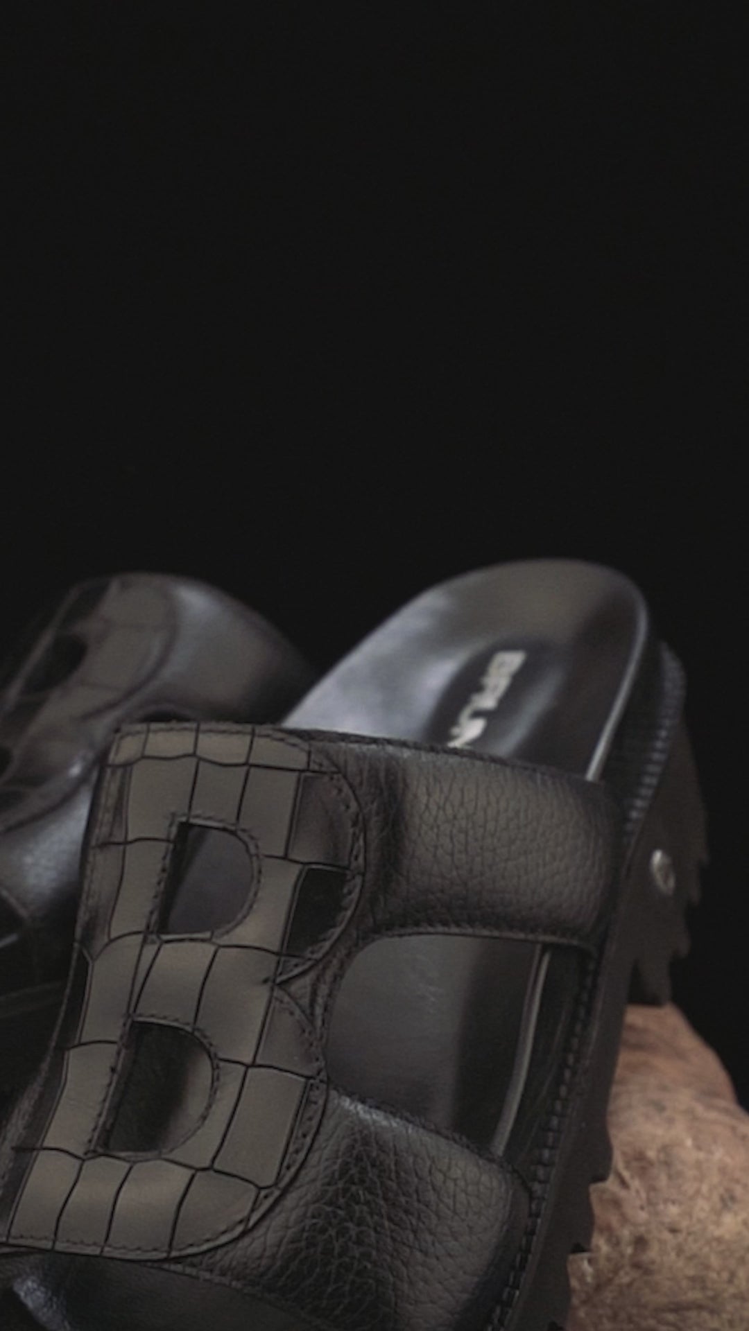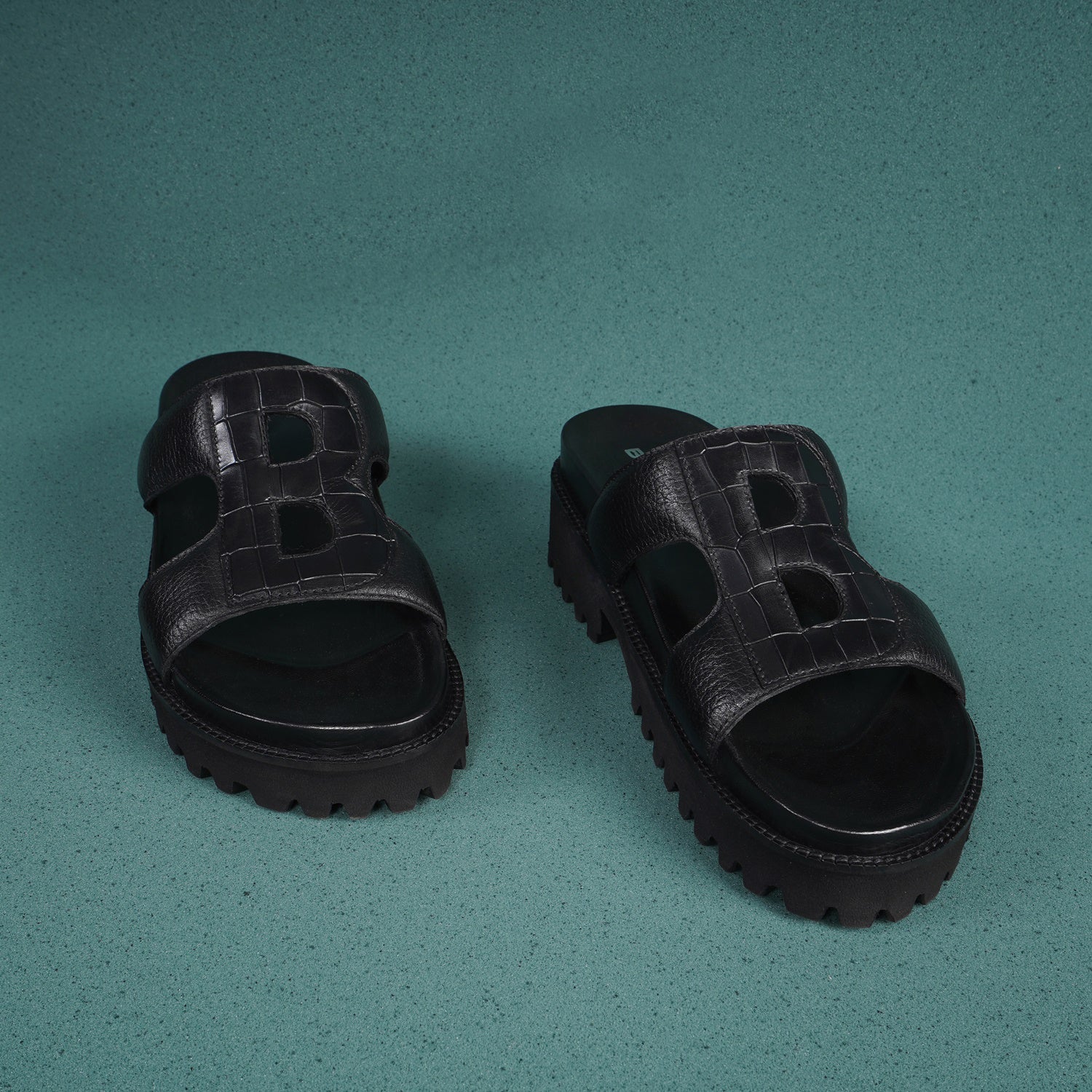 "B&B" Brand Initials Black Super Chunky Slide-in Slippers