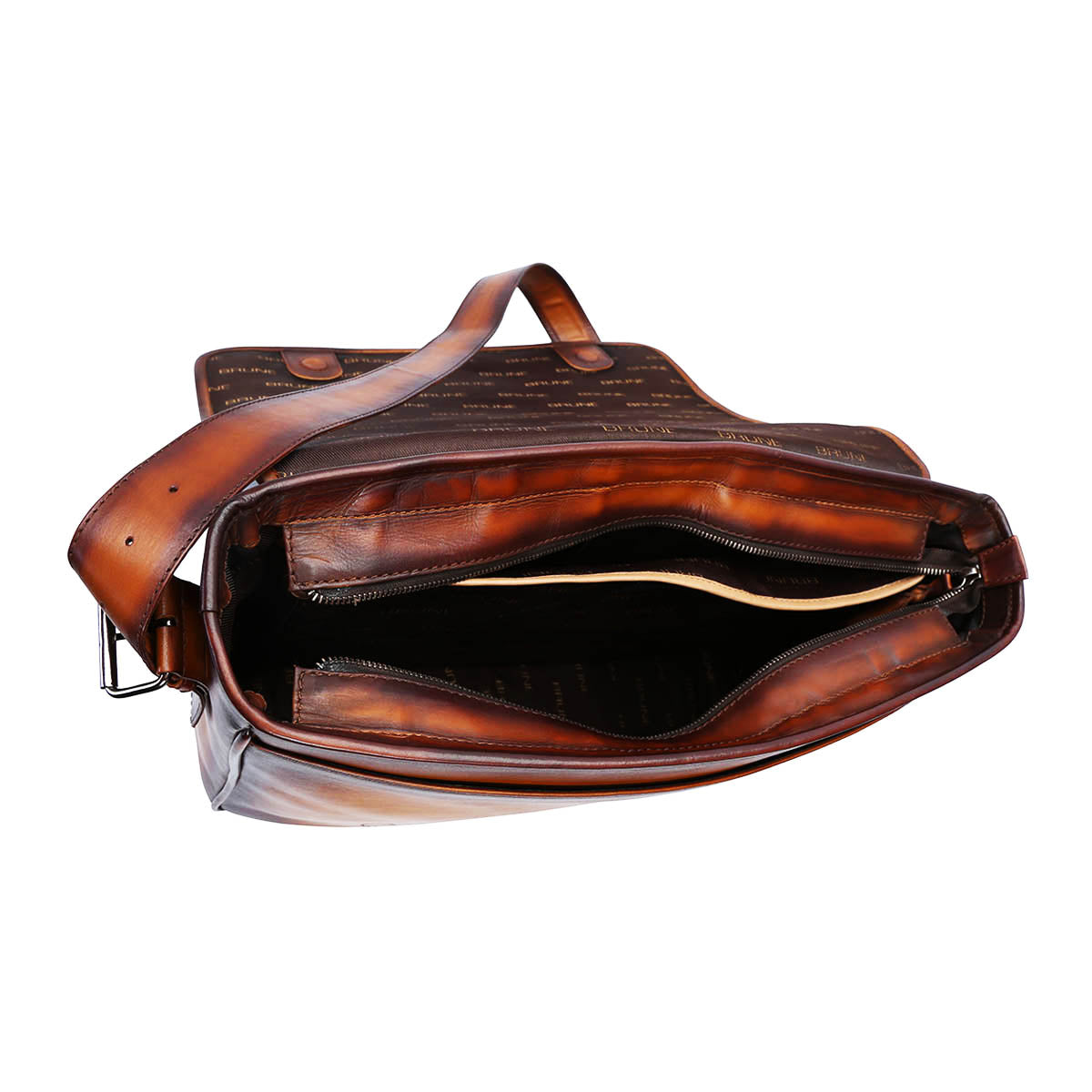 Brune & Bareskin Lion King Tan Hand Painted Veg Tanned Leather Messenger Bag