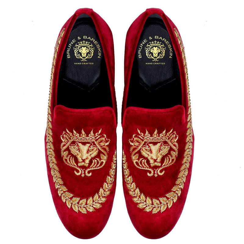 Brune & Bareskin's Extra comfy BLACK velvet slip-on shoes. Made using the most premium Italian velvet, Rubber Sole with Anti Skid Pattern and extra cushioned padding in the insole. Zardosi Hand Work is done by the most skilled team in the country with experience of 3 decades which makes this slip-on distinct from others. You just don't wear Brune & Bareskin Shoes to Look Good. You wear them because you have never worn a better Looking and Comfortable Slip-on Ever, Before This Day.