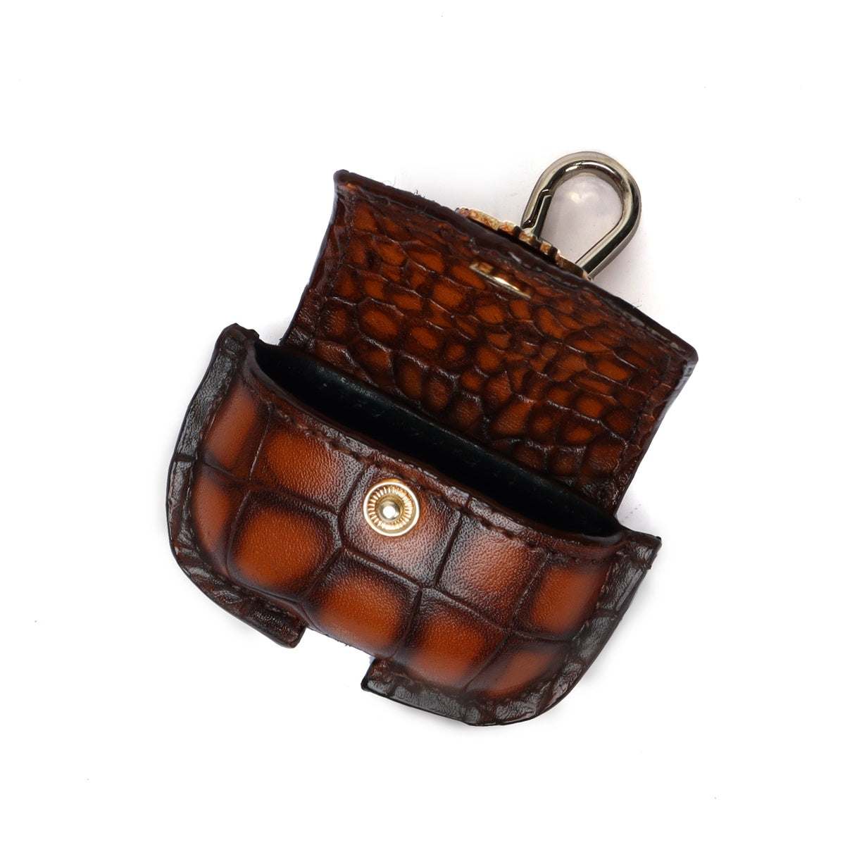 Carry your Air-Pods Pro with Style and Protection in this Brune & Bareskin New Smokey Finish Croco Print Leather Cover. It provides an easy to hang loop clip. You can get it in many colors & customization options. This cover is quite very handy for the travelers as well. The easier access snap button is there to keep it extra handy. Stylish look makes it an eye catching accessory. You can match it with your Apple iPhone & Apple Watch Strap.