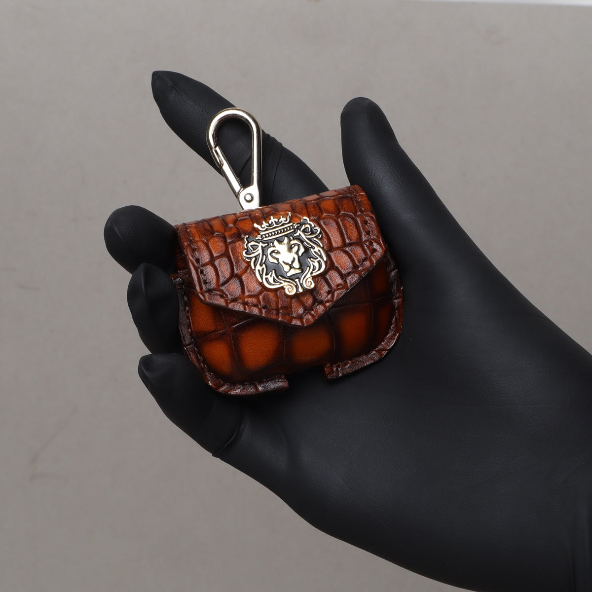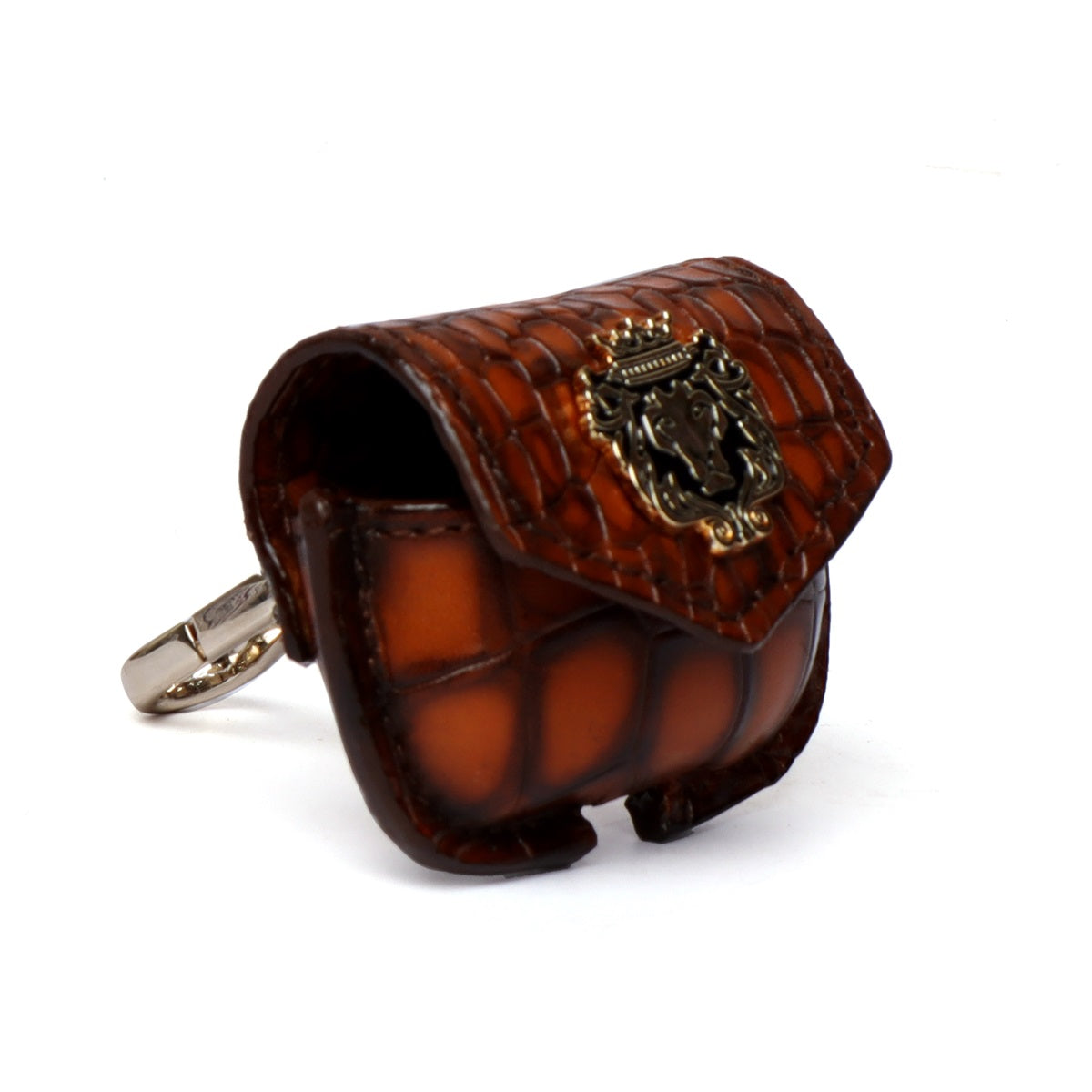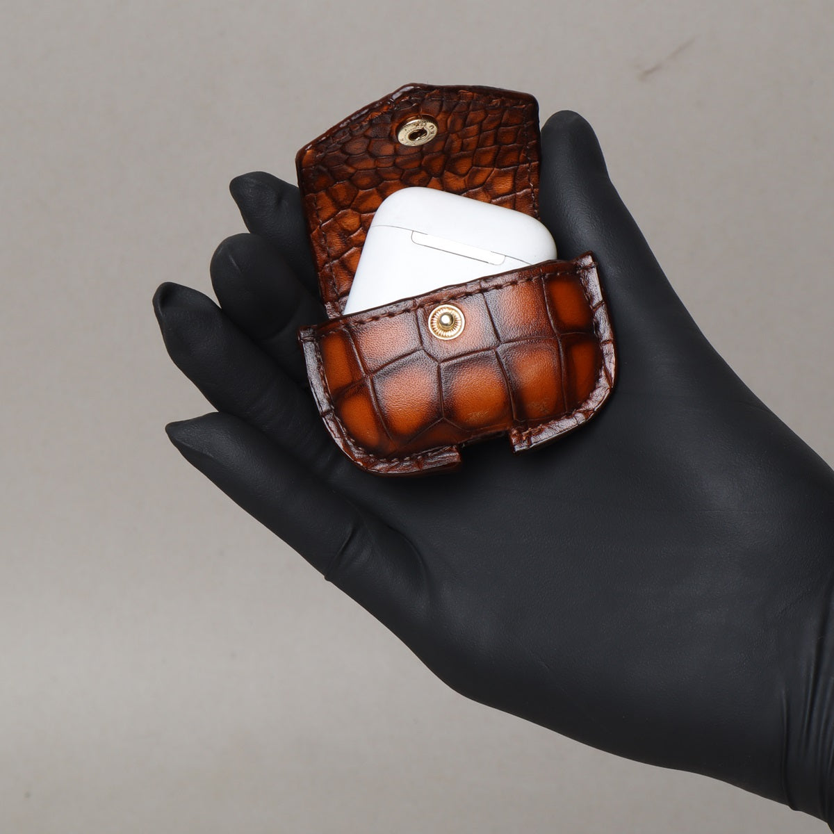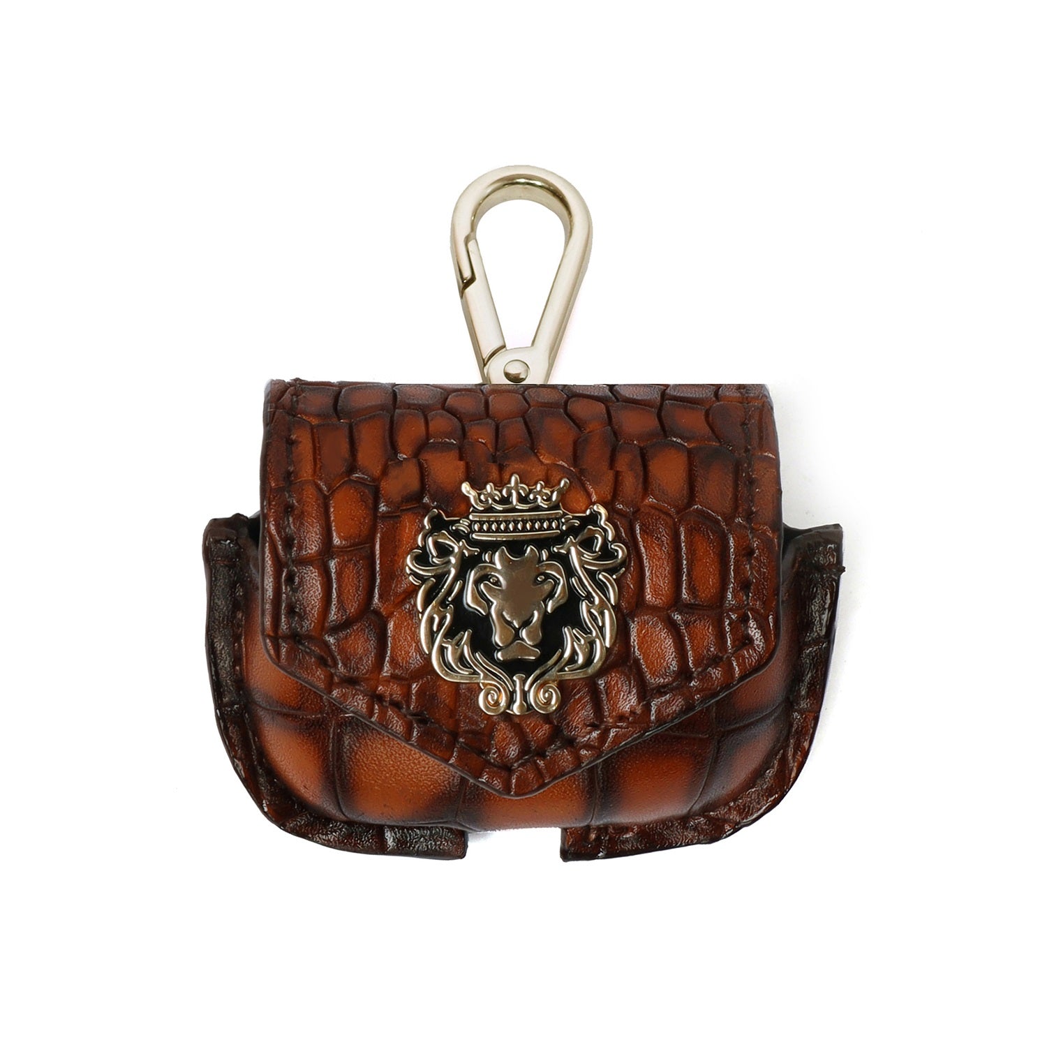 Air-Pods Pro Smokey Tan Croco Print Leather Carrying Case by Brune & Bareskin