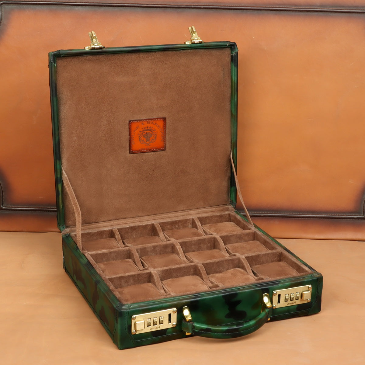 Camo Hand Painted Leather 12 Wrist Watch Carry Briefcase by Brune & Bareskin