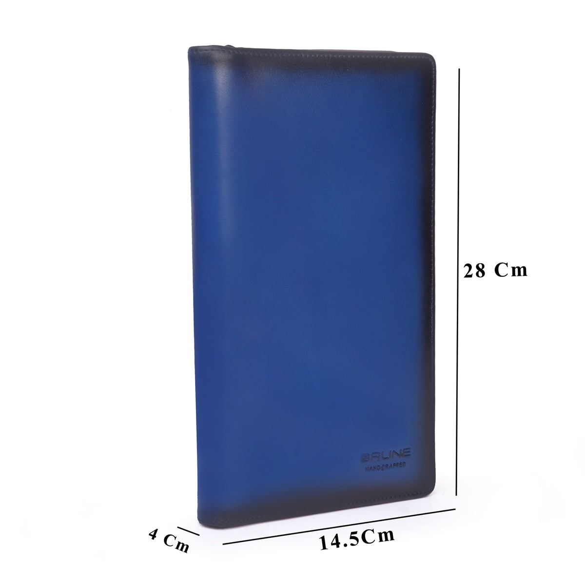 Blue Bi-Fold Multi pockets Document Holder with zip Closure By Brune & Bareskin