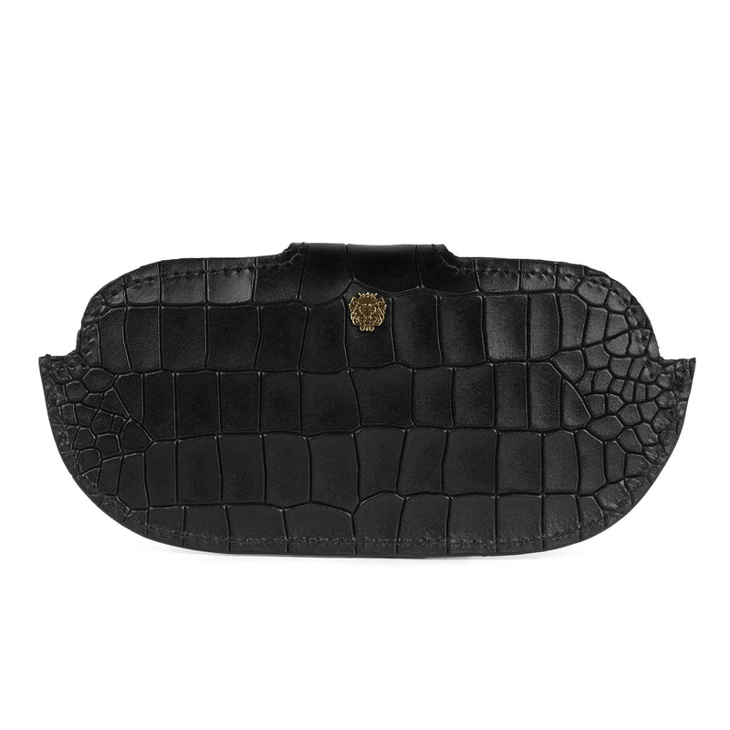 This leather cover by Brune & Bareskin in a chic Smokey tan color not only exudes a sophisticated look but also offers premium quality protection for your eyewear. The deep cut croco textured leather is both stylish and secure, while the gold finished snap button and trademark lion logo add a touch of elegance. With a perfect hanging loop, this broad look cover can be easily carried with a shoulder strap or waist belt, making it a must-have travel accessory. You can get it made in any color shade you want along with the name initials with our Bespoke Service.