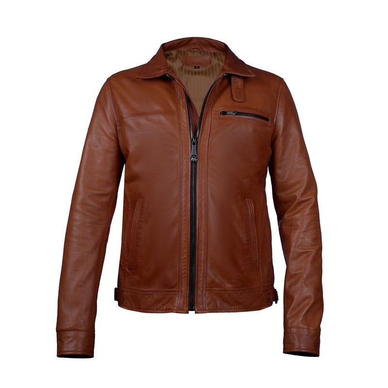 Regular Fit Club Collar Style Orangish Tan Leather Jacket By Brune & Bareskin