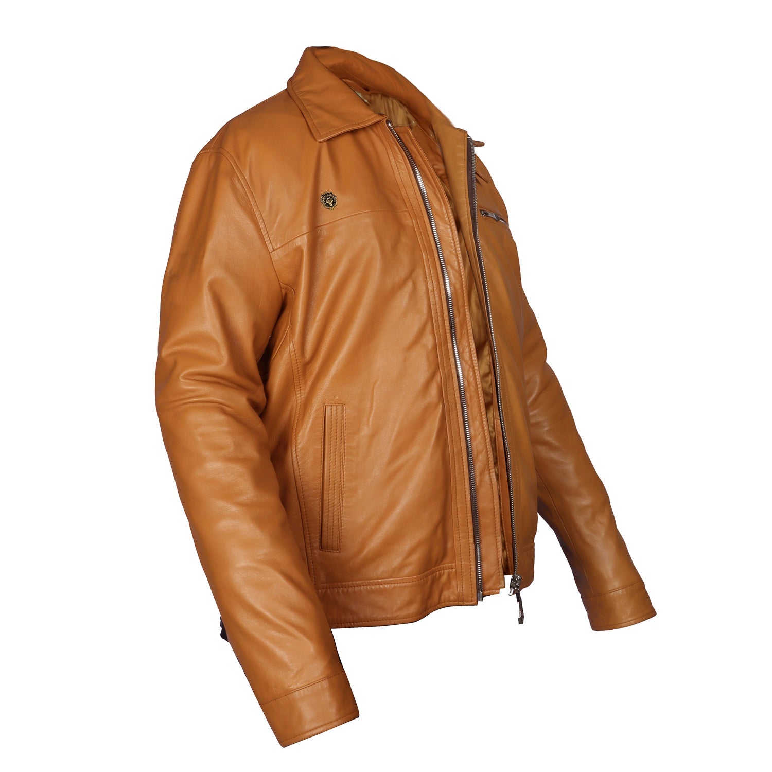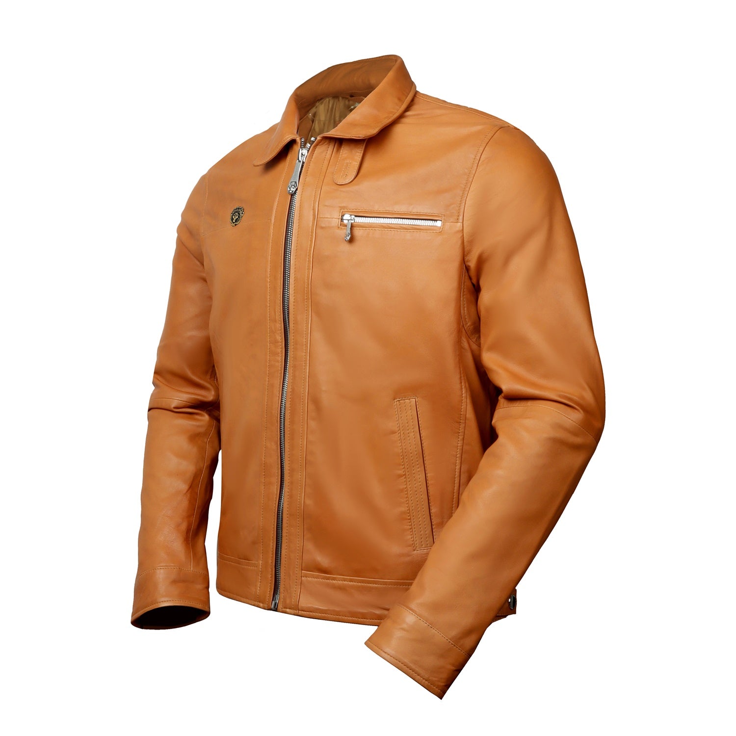 Regular Fit Club Collar Style Orangish Tan Leather Jacket By Brune & Bareskin