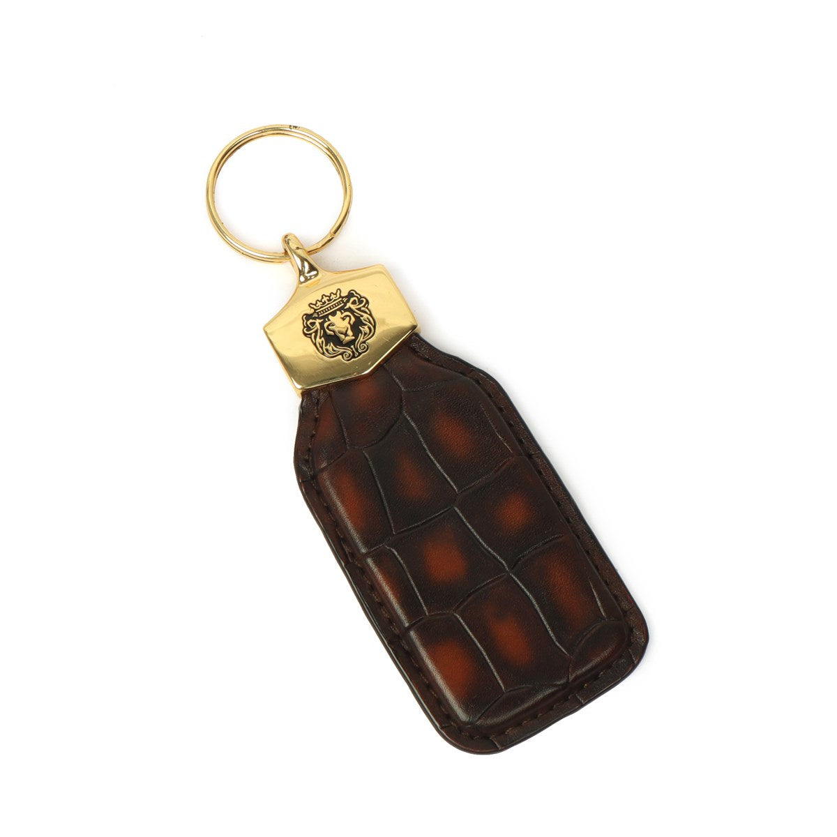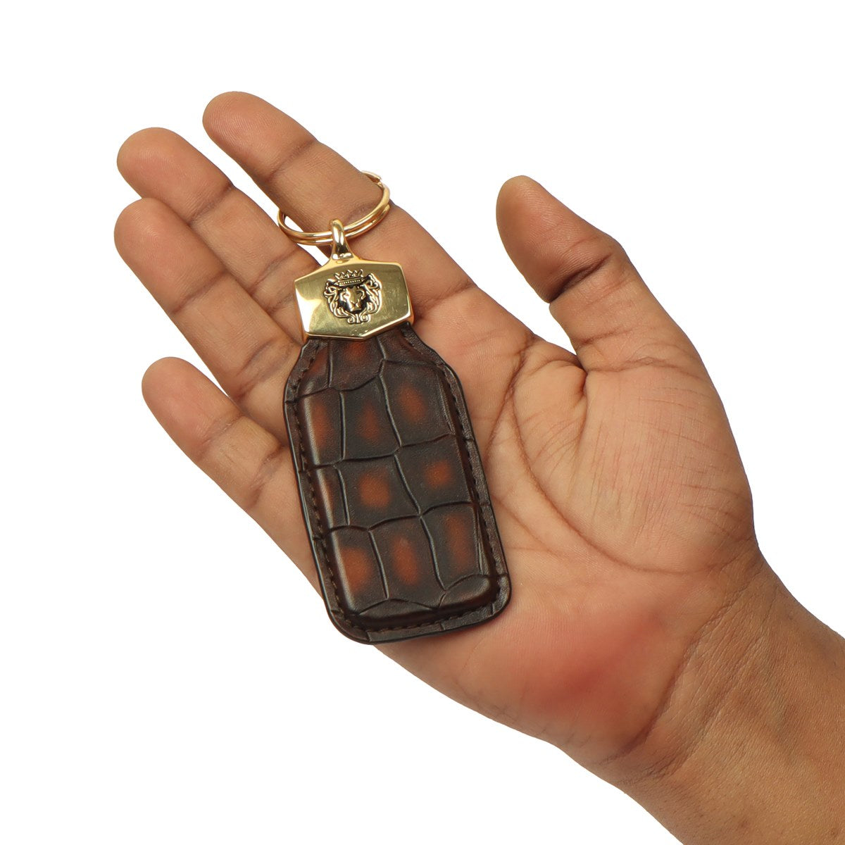 Dark Brown Deep Cut Croco Print Leather Large Scales Keychain By Brune & Bareskin