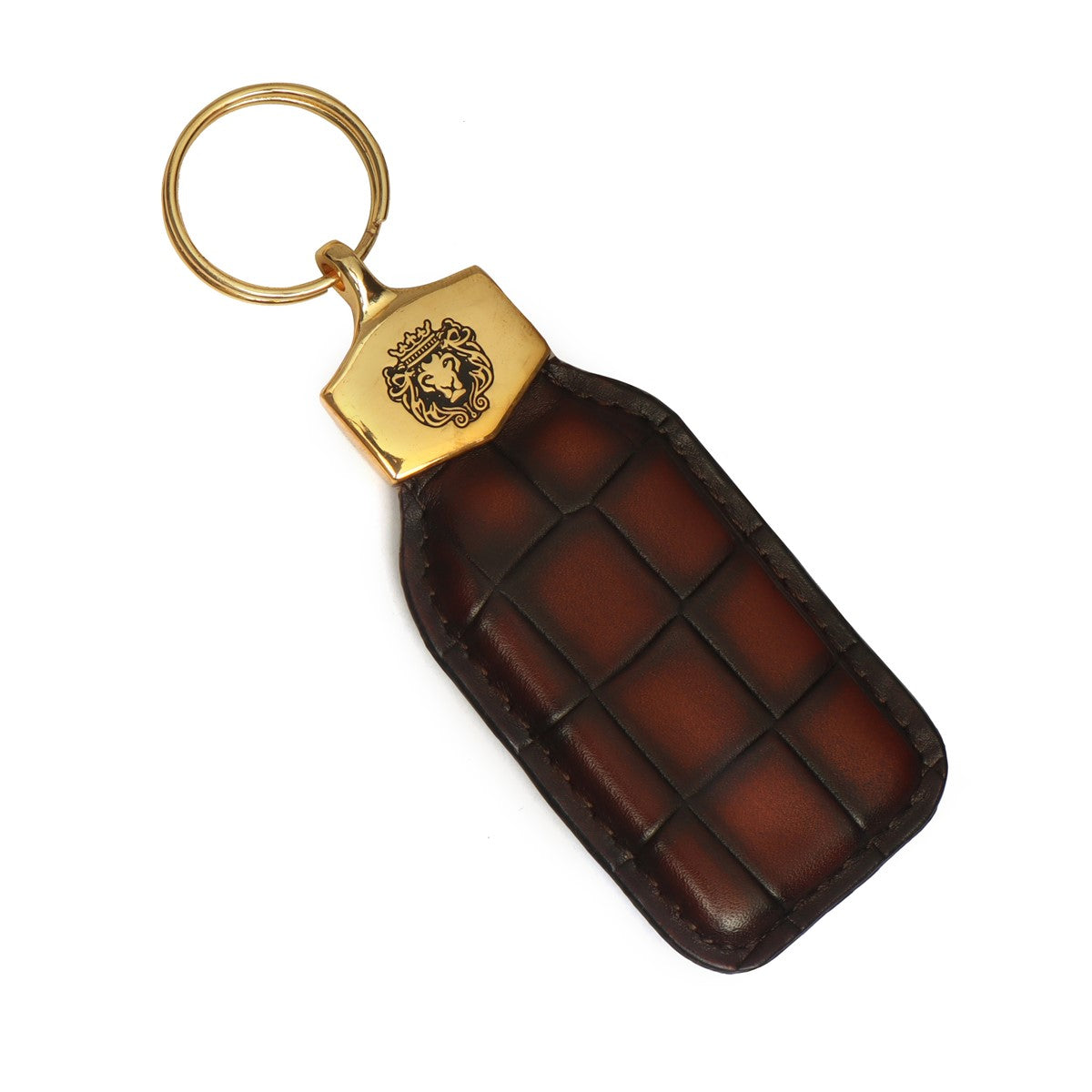 Cognac Deep Cut Croco Print Leather Large Scales Keychain By Brune & Bareskin
