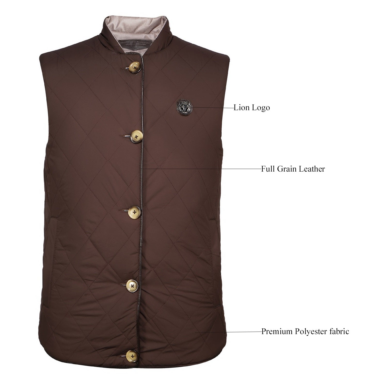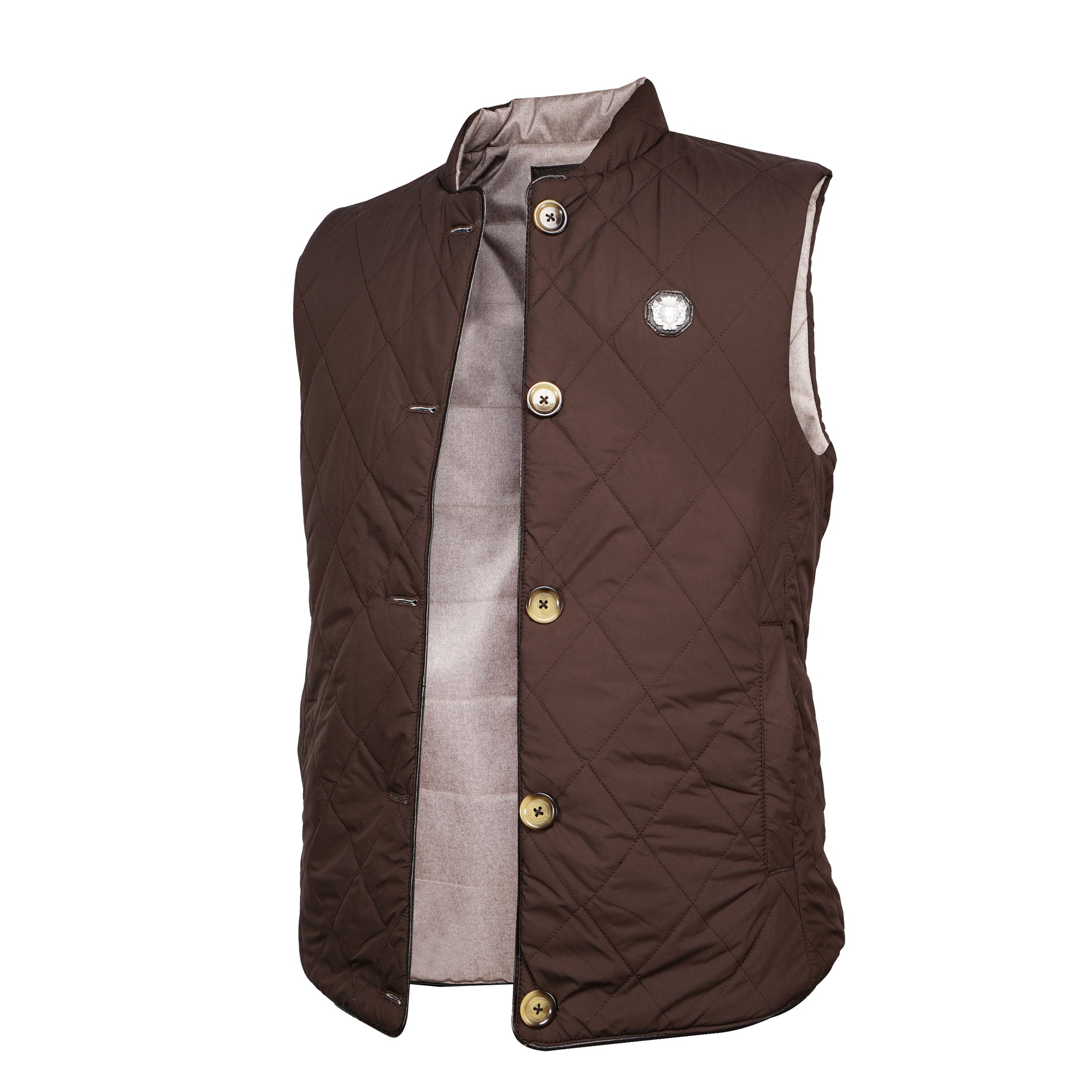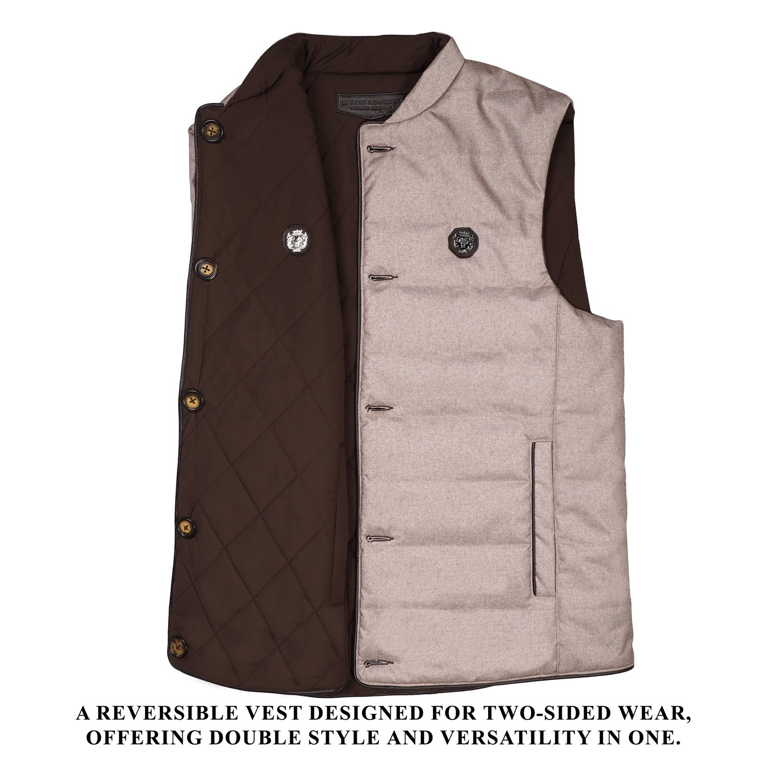 2-in-1 Reversible Quilted Vest in Dark Brown & Beige
