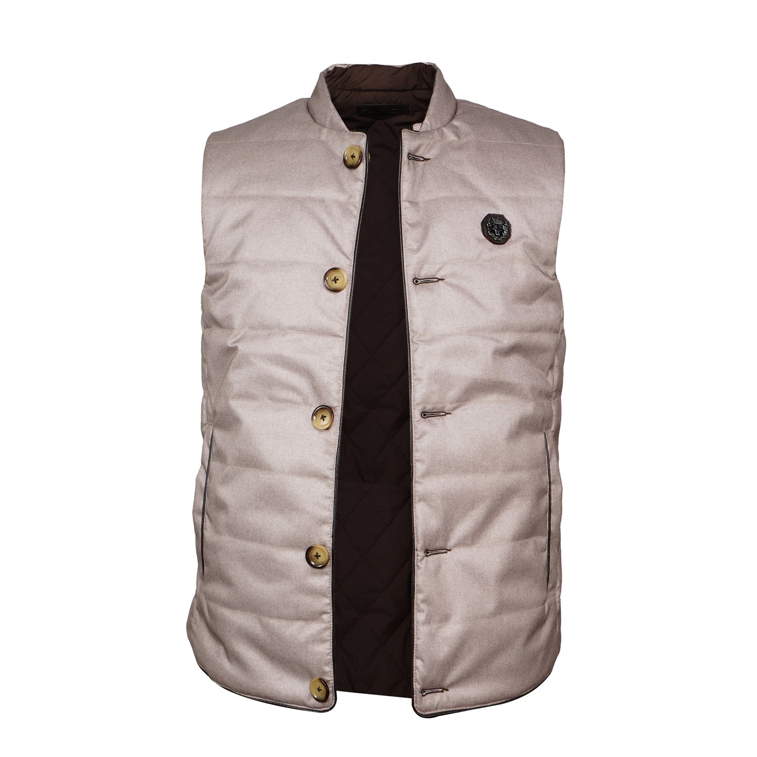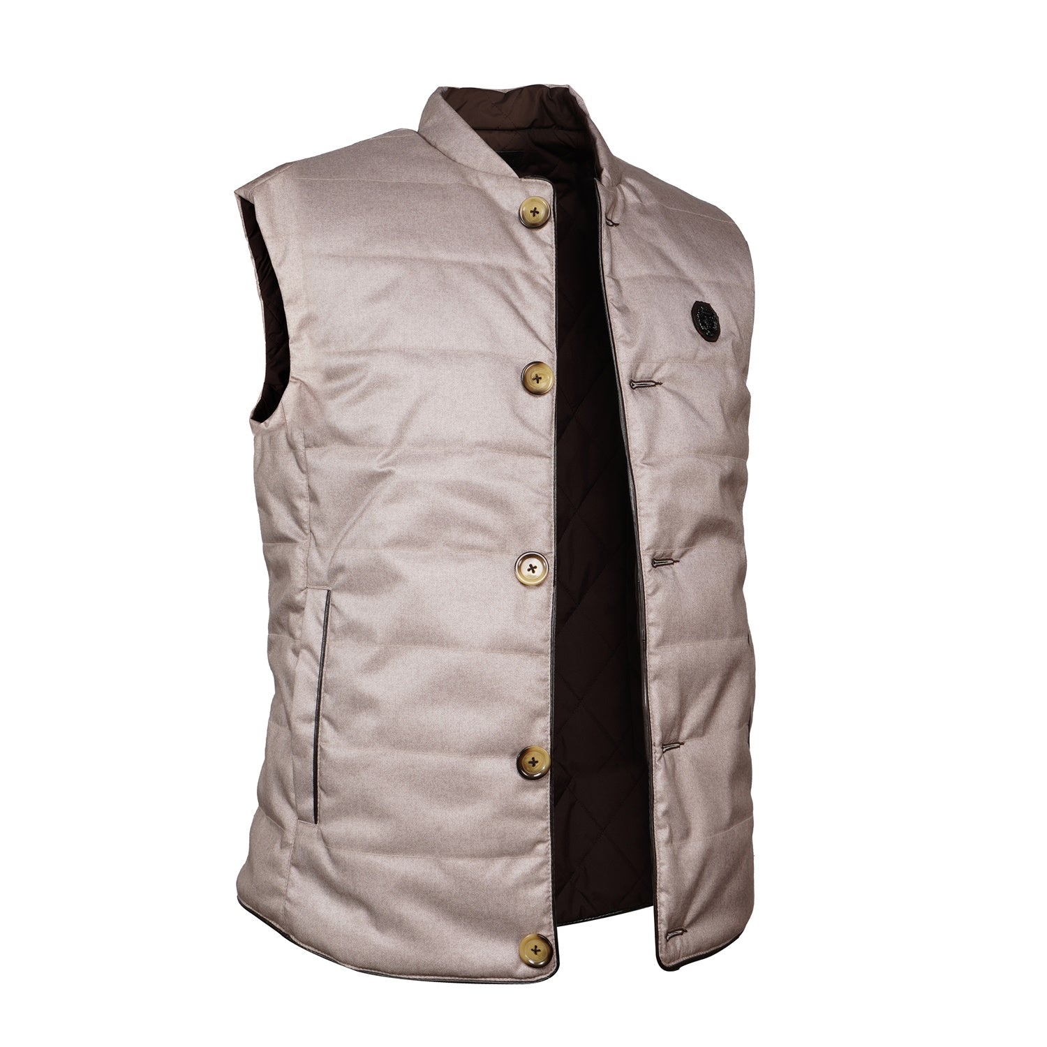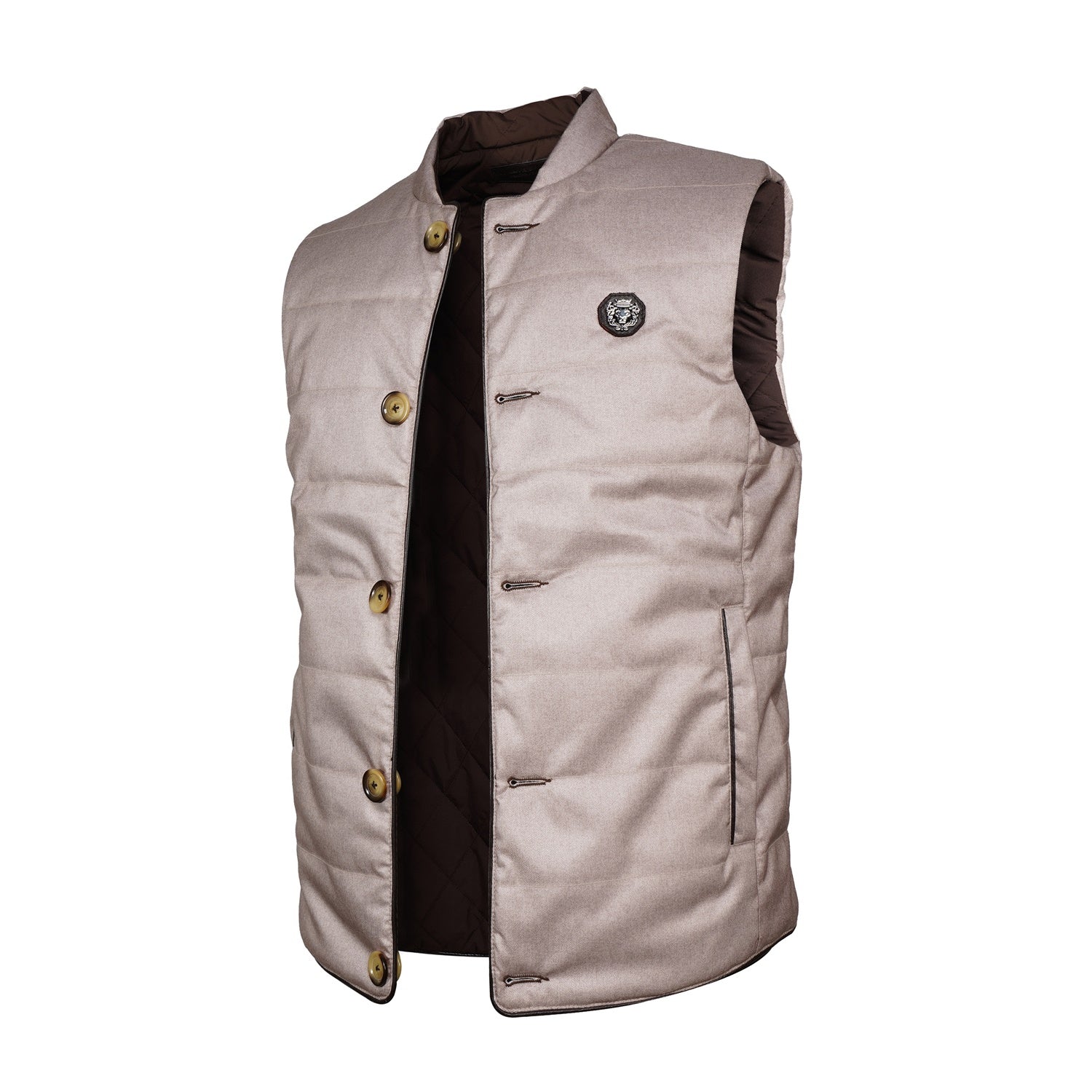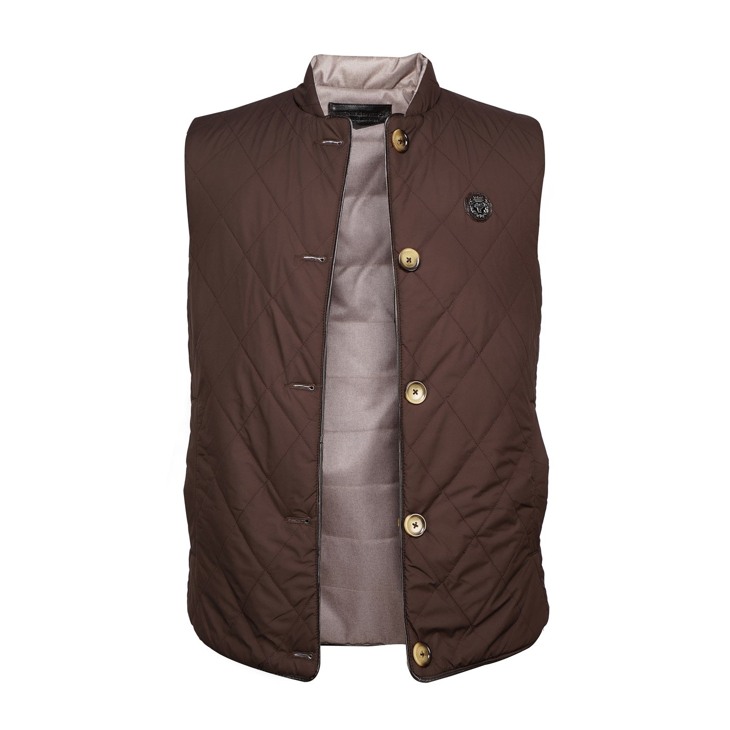 2-in-1 Reversible Quilted Vest in Dark Brown & Beige
