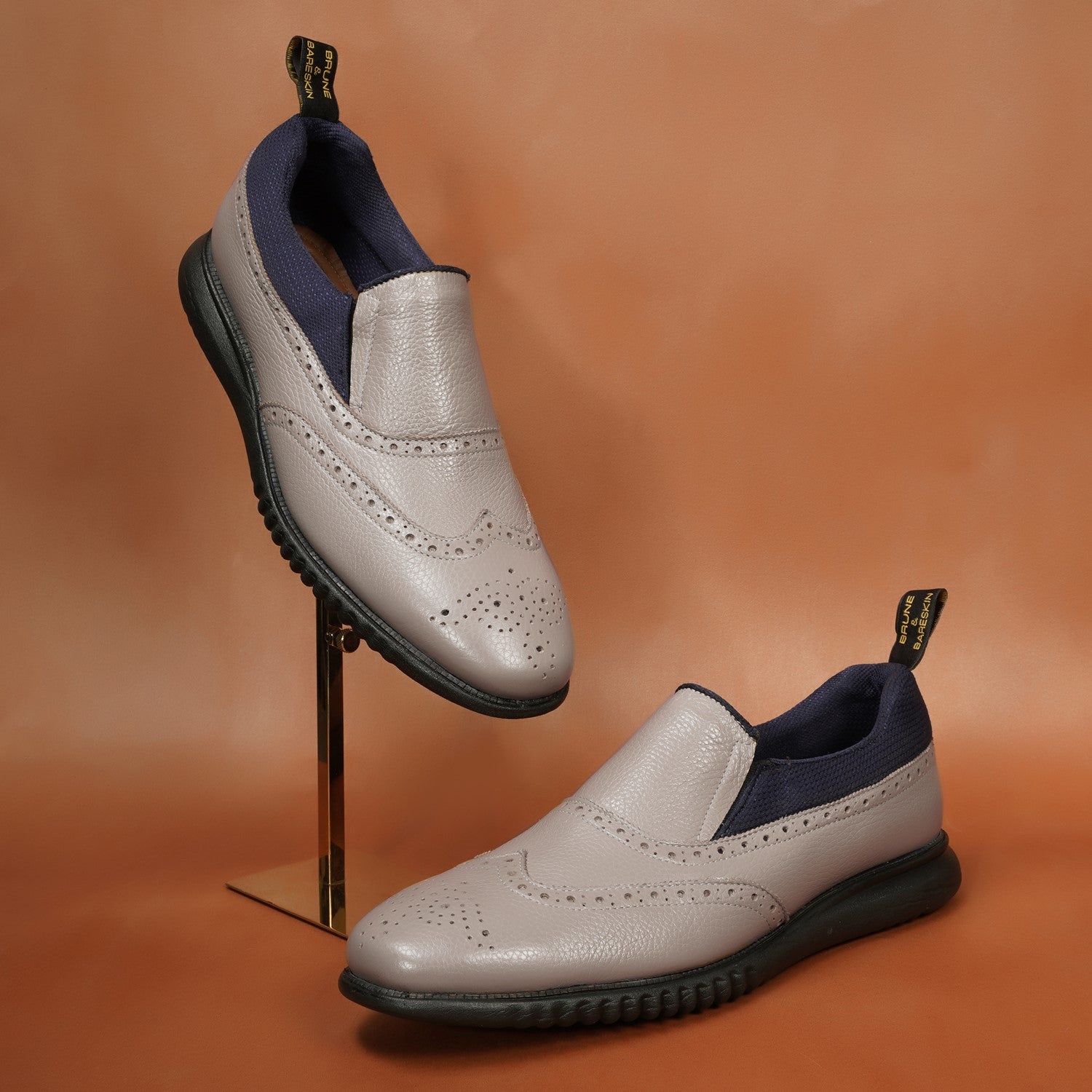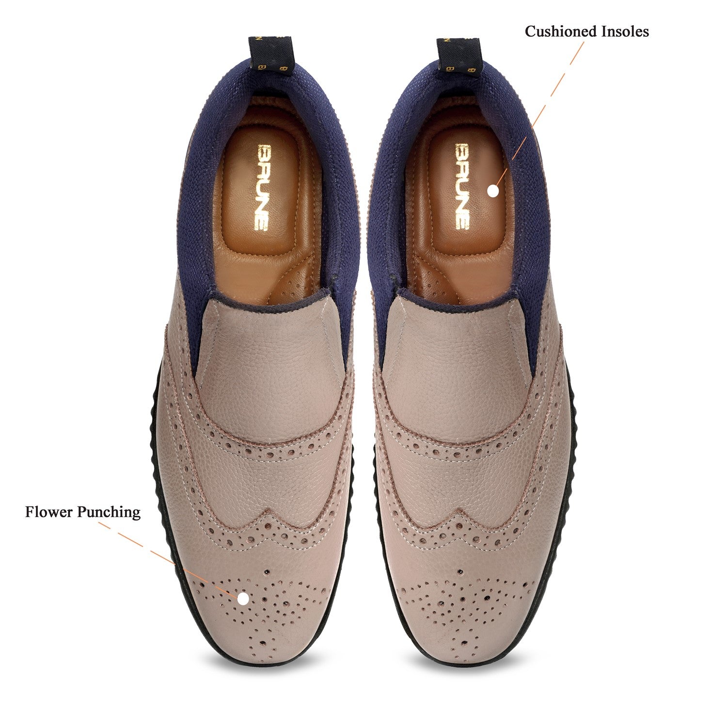 This pair of brogue slip-on shoes is ideal for everyday wear to the office or for meetings with clients. Adds an element of perfect style and ensures snug fit as well as foot balance. When you choose to wear branded, shoes by Brune & Bareskin, you are sure to get more than a few glances coming your way.